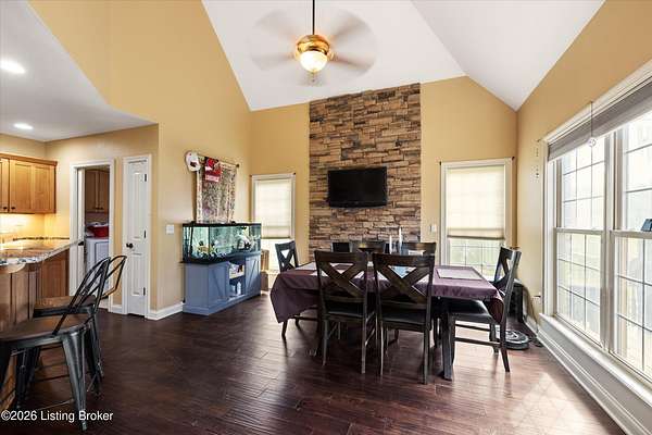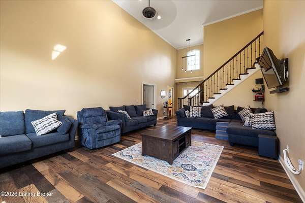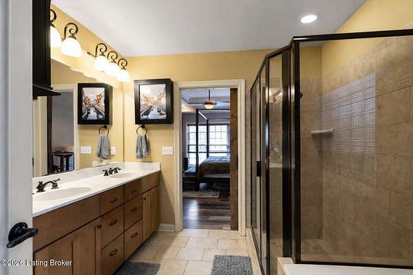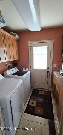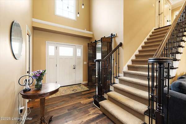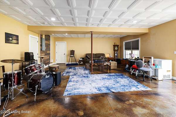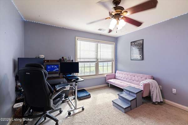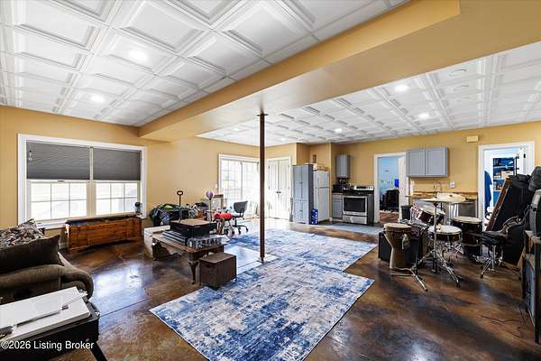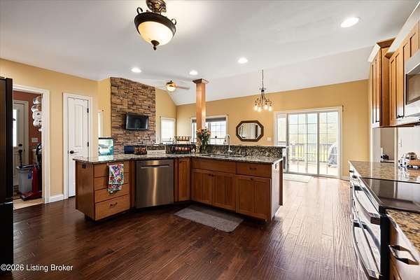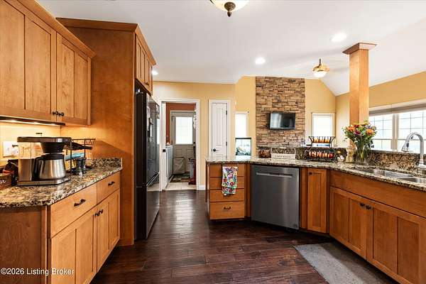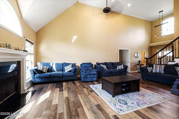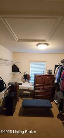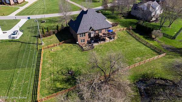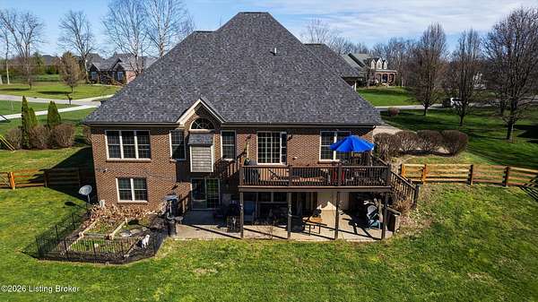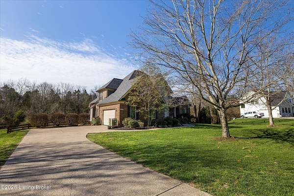 Located on an expansive 1.8 acre lot in the desirable Ballard Woods neighborhood of Oldham County, this exceptional home offers 5 bedrooms, including two full primary suites-perfect for multi-generational living. The main level features a spacious dine-in kitchen with abundant cabinetry, generous natural lighting, a large island with seating, updated appliances, a cozy fireplace, and direct access to an expansive Trex deck-ideal for entertaining. Just off the kitchen is a versatile flex space, currently used as a home office, easily enclosed with stylish barn doors. An oversized first-floor laundry/mud room provides added convenience and storage. The open floor plan flows seamlessly throughout the home and is enhanced by upgraded flooring and has been freshly paint. The first-floor primary suite is generously sized and showcases crown molding, a large walk-in closet, and a beautifully updated en suite bath with a luxurious soaking tub and glass-enclosed shower. The family room features upgraded flooring, vaulted ceiling and a fireplace wrapped by an array of windows. Giving you the perfect combination of coziness and tranquility as you gaze upon the peaceful fenced in yard that abuts the wooded area of your yard. Upstairs, you'll find three additional bedrooms with ample storage and a shared bathroom featuring extended vanity space. The finished walk-out basement adds approximately 1,200 square feet of living space and is ideal for guests, in-law accommodations, or additional living quarters. It includes a second kitchen with stove, dishwasher, butcher block countertops, and cabinetry. A second primary suite with a full en suite bath, closet, and laundry hookups adds flexibility and privacy. An additional room can serve as a guest room, office, gym, or hobby space. Off the living space is a 12x22 foot workshop, complete with 50 amp and 30 amp 230v hookup for air compressor and welder. This area also has direct access to the backyard and is perfect for outdoor toy storage or lawn equipment. Recent home updates include a tankless water heater (approx. 1 year old) and a newer roof (less than 1 year old), fresh paint, and newer flooring. The backyard is designed for enjoyment with new Trex decking and four-board fencing while backing up to the wood lines for added privacy and tranquility. Opportunities like this in Oldham County are rare-schedule your private showing today!
