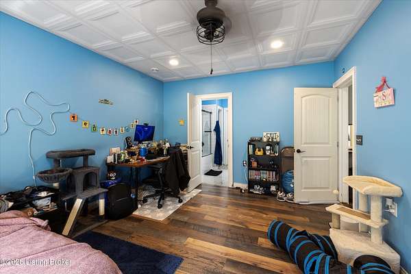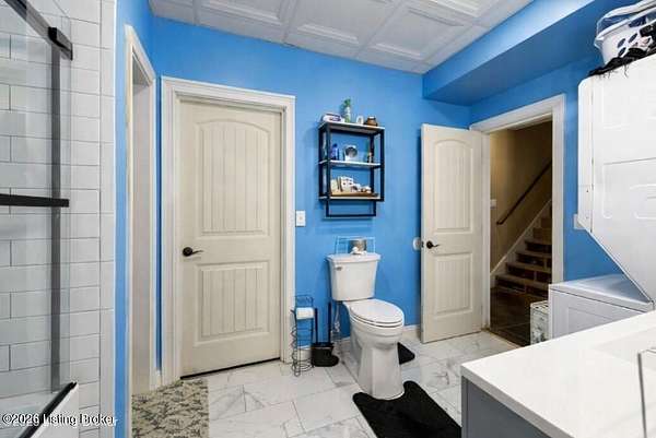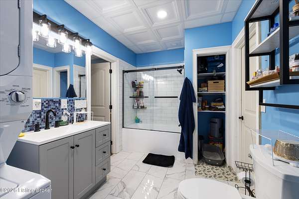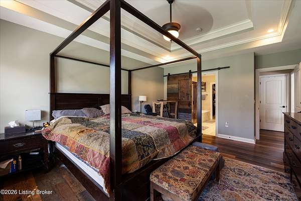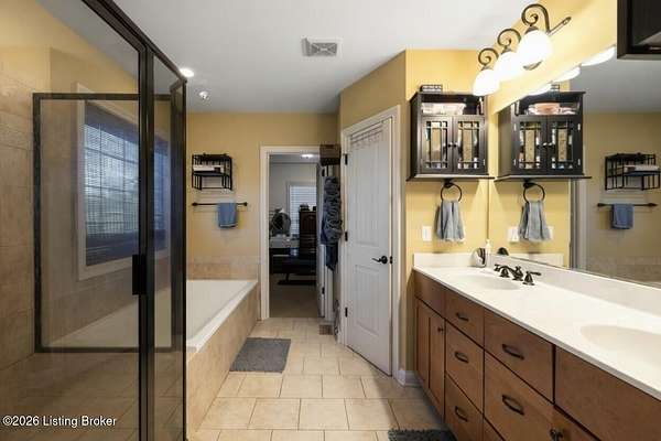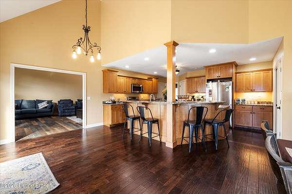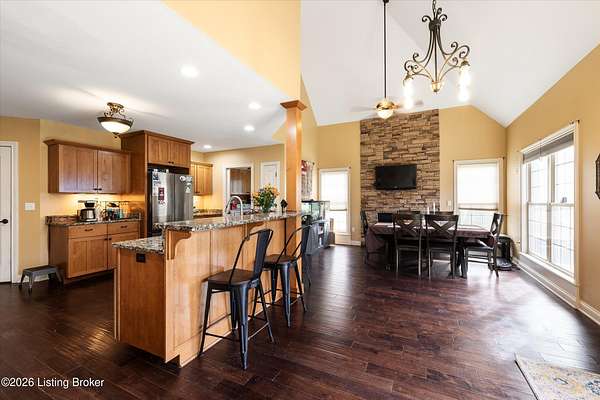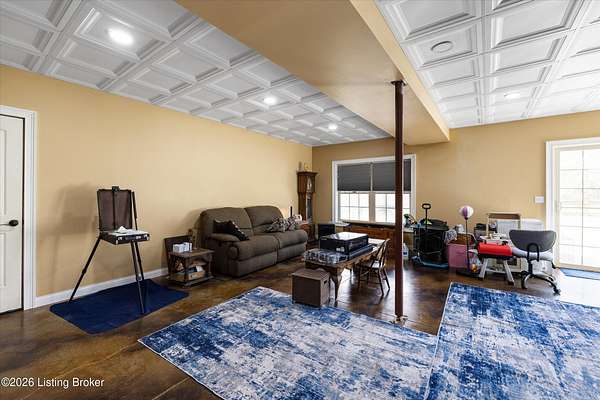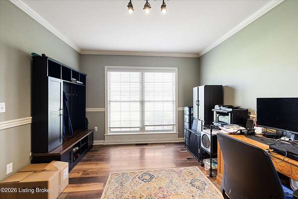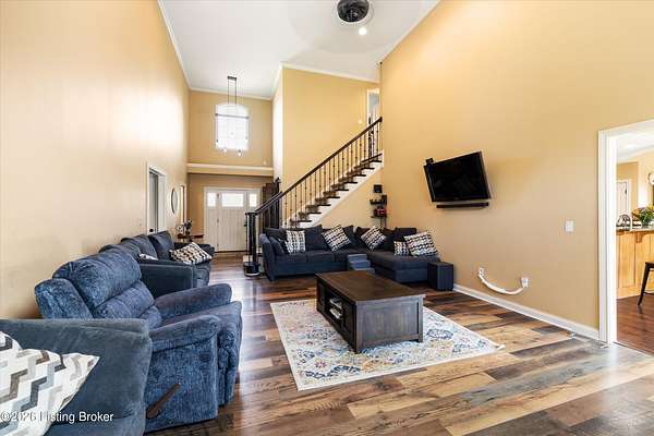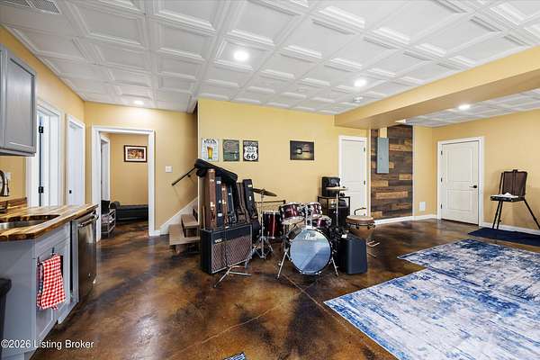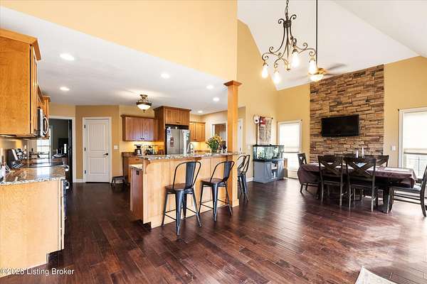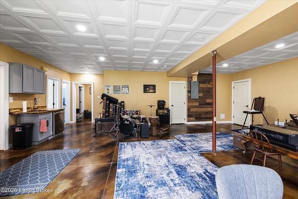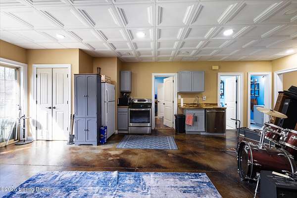 Located on an expansive 1.8 acre lot in the desirable Ballard Woods neighborhood of Oldham County, this exceptional home offers 5 bedrooms, including two full primary suites-perfect for multi-generational living. The main level features a spacious dine-in kitchen with abundant cabinetry, generous natural lighting, a large island with seating, updated appliances, a cozy fireplace, and direct access to an expansive Trex deck-ideal for entertaining. Just off the kitchen is a versatile flex space, currently used as a home office, easily enclosed with stylish barn doors. An oversized first-floor laundry/mud room provides added convenience and storage. The open floor plan flows seamlessly throughout the home and is enhanced by upgraded flooring and has been freshly paint. The first-floor primary suite is generously sized and showcases crown molding, a large walk-in closet, and a beautifully updated en suite bath with a luxurious soaking tub and glass-enclosed shower. The family room features upgraded flooring, vaulted ceiling and a fireplace wrapped by an array of windows. Giving you the perfect combination of coziness and tranquility as you gaze upon the peaceful fenced in yard that abuts the wooded area of your yard. Upstairs, you'll find three additional bedrooms with ample storage and a shared bathroom featuring extended vanity space. The finished walk-out basement adds approximately 1,200 square feet of living space and is ideal for guests, in-law accommodations, or additional living quarters. It includes a second kitchen with stove, dishwasher, butcher block countertops, and cabinetry. A second primary suite with a full en suite bath, closet, and laundry hookups adds flexibility and privacy. An additional room can serve as a guest room, office, gym, or hobby space. Off the living space is a 12x22 foot workshop, complete with 50 amp and 30 amp 230v hookup for air compressor and welder. This area also has direct access to the backyard and is perfect for outdoor toy storage or lawn equipment. Recent home updates include a tankless water heater (approx. 1 year old) and a newer roof (less than 1 year old), fresh paint, and newer flooring. The backyard is designed for enjoyment with new Trex decking and four-board fencing while backing up to the wood lines for added privacy and tranquility. Opportunities like this in Oldham County are rare-schedule your private showing today!