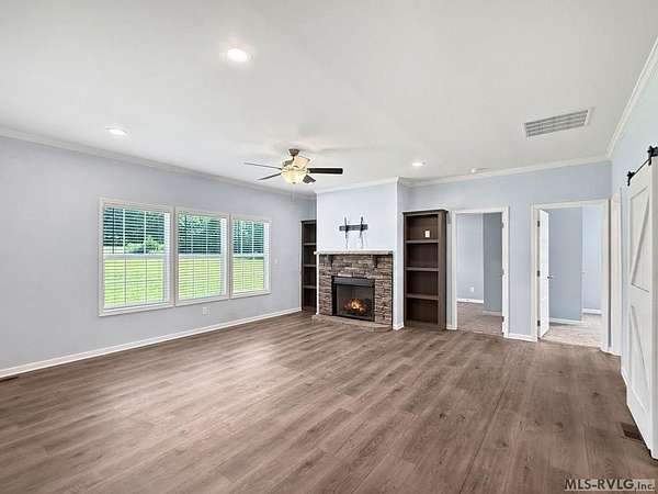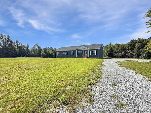 Like-New 2024 Ranch on 4+ Wooded Acres - Peaceful Country Living Near Buggs Island Lake Nestled on over 4 serene, wooded acres, this like-new 2024 ranch-style home offers quiet country living just minutes from town conveniences and the natural beauty of Buggs Island Lake. A long gravel drive leads to this peaceful retreat, where you'll find 4 spacious bedrooms, 2 full baths, and a smart split floor plan designed for both comfort and privacy. The primary suite is privately situated on one end of the home, while the remaining three bedrooms occupy the other--ideal for families or guests. Enjoy cozy evenings in the den with gas-log fireplace, relax in the formal living room/bonus room, and take in the tranquil surroundings from the wooden back deck or front stoop. Located just a short drive from Boydton, Clarksville, Chase City, and only about 25 minutes from South Hill, you'll also appreciate easy access to Rudd's Creek boat ramps for fishing, boating, and lake recreation on Buggs Island. A rare opportunity to enjoy modern comfort, privacy, and proximity to outdoor adventure--all in one beautiful property. There is a pond. On the property of course which a small area is in the adjoining land. Sellers drawing is loaded to show approximate location and approximate portion on the subject land