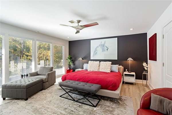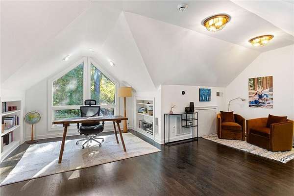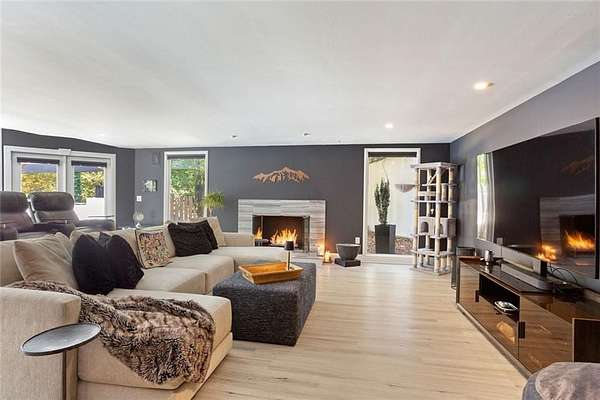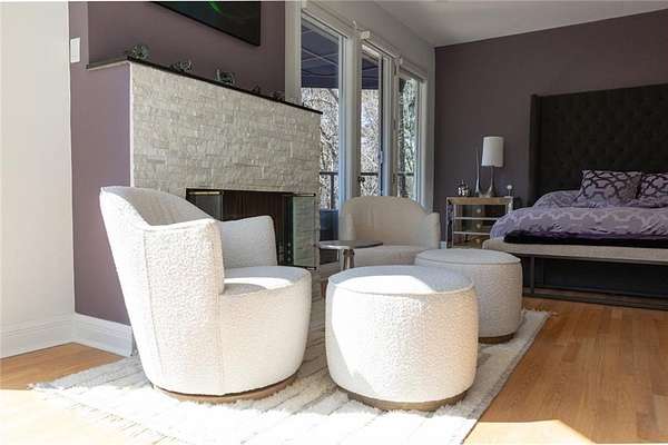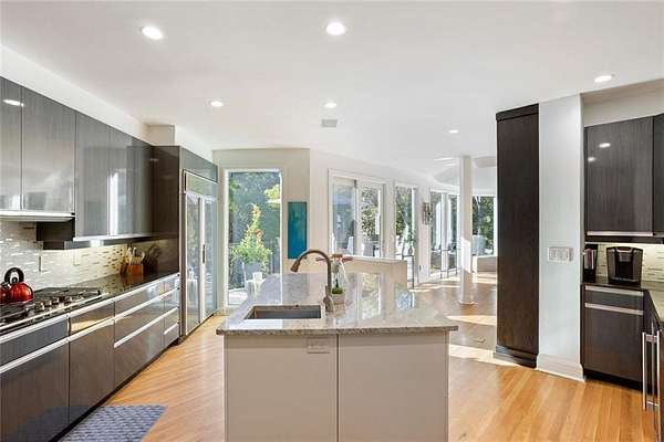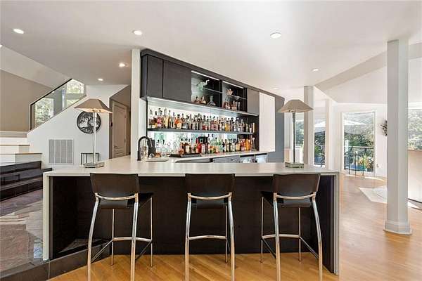 A rare architectural retreat on prestigious Paces Ferryoffering resort-style living on two private wooded acres in the heart of Buckhead. This gated contemporary estate spans over 7,500 square feet of light-filled living space, where walls of floor-to-ceiling glass frame wooded views. Designed for effortless entertaining, the open-concept main level flows from the fireside great room to a custom bar with wine refrigerators, ice maker, dishwasher, and abundant cabinetry. It seamlessly connects to the chefs kitchen and dining area. Sliding doors open to an elevated porch overlooking the pool terrace. Upstairs, the private primary suite features a fireplace, secluded patio, dual custom dressing rooms, and a marble bath. A dedicated office wing with separate exterior entry provides ideal work-from-home flexibility. The main level includes four additional bedrooms (two ensuite), while the daylight walk-out terrace level offers a full second kitchen, bedroom, bath, and expansive living spaceideal for guests or multigenerational living. The heated saltwater pool, separate dual spas, and expansive terrace create a true backyard oasis. A covered outdoor living area with stacked stone fireplace, infrared heaters, and full outdoor kitchen allows for year-round enjoyment. The acreage offers both privacy and flexibility, with a terraced greenspace below the pool level, an additional outdoor area in the front yard with a koi pond, as well as ample parking for guests. Recent improvements include updated lighting, relined fireplaces, whole-house water filtration, new gutters, upgraded security, replaced pool equipment, and California Closets throughout. Minutes from Buckheads premier shopping, dining, and private schools, this gated estate offers privacy, scale, and exceptional indoor-outdoor living in one of Atlantas most established locations.