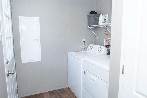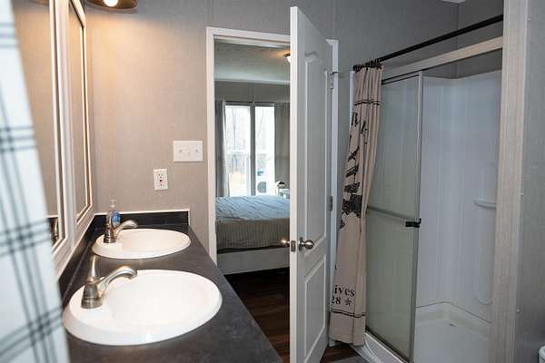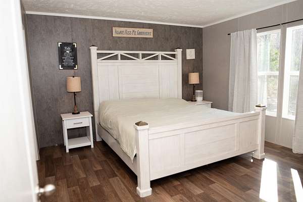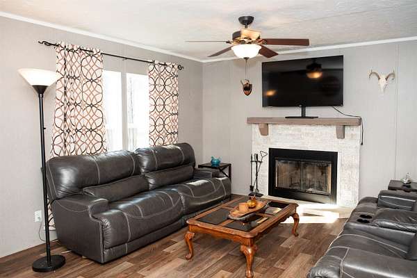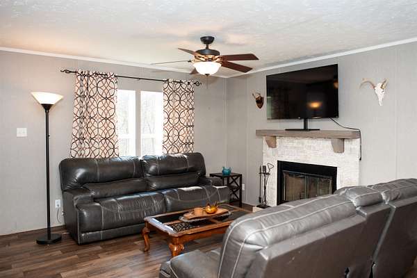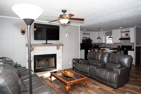 Discover your peaceful sanctuary just minutes from Elkton. Nestled on over 3 acres of private, picturesque land, this nearly new Clayton home, built in 2021, offers modern living in a serene setting. The bright, open family room features a cozy wood-burning fireplace and flows seamlessly into a kitchen with generous counter space. The thoughtful floor plan includes three bedrooms and two full bathrooms. Retreat to the spacious primary suite, complete with a soaking tub, separate shower, and dual vanities. The home also features insulated windows, walk-in closets, and a utility room with washer and dryer. Outside, enjoy the convenience of a 10×16 shed with electricity, along with the beauty of a level, wooded, and secluded lot. With private well water, septic, and cable access, this property offers a rare blend of comfort, functionality, and privacy.