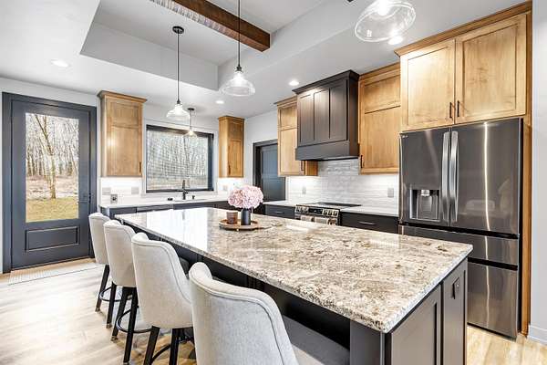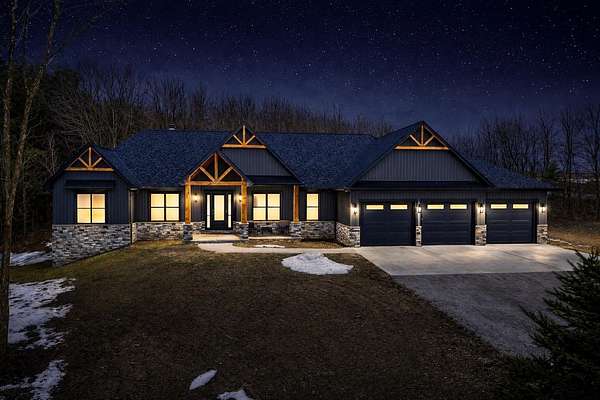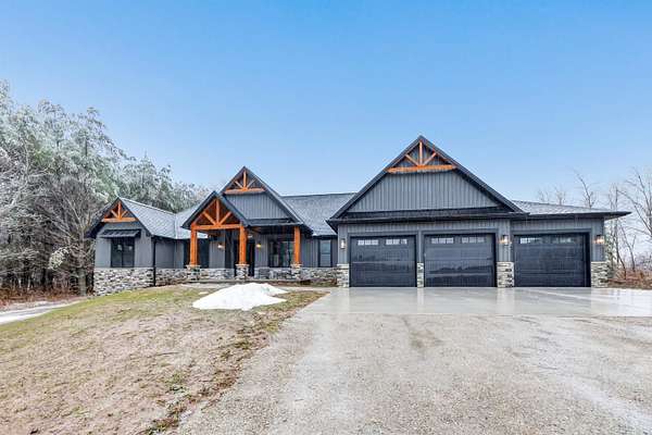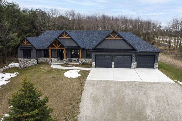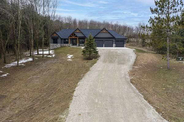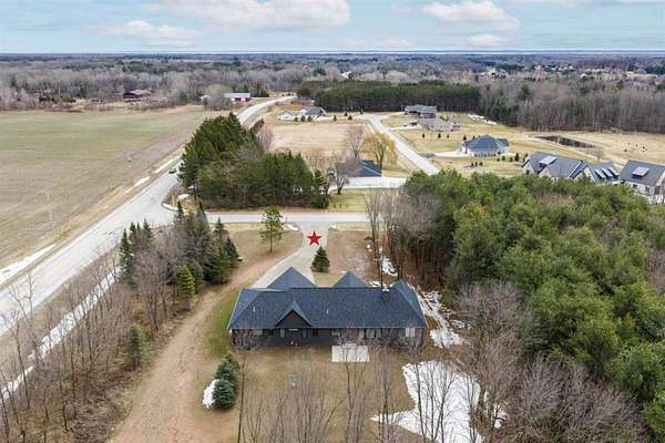 Better than new construction! This beautiful custom-built ranch in Suamico sits on 2.4 acres and is located in the desirable Howard-Suamico School District. Less than a year old, this home offers 3 bedrooms & 2.5 baths, including a spacious primary suite with a walk-in tile shower, soaking tub, and large walk-in closet. Open-concept kitchen and great room with a cathedral ceiling & a wood-burning fireplace. Kitchen includes a large granite island & large walk-in pantry. 1st floor office with built-ins. Exposed lower level offers future expansion potential. Heated 3-car garage with basement access. Additional highlights include 3-zoned heating, generator-ready electrical panel & it is a TC Energy approved home. At grade septic system serves the home.