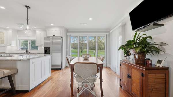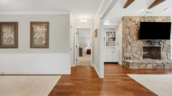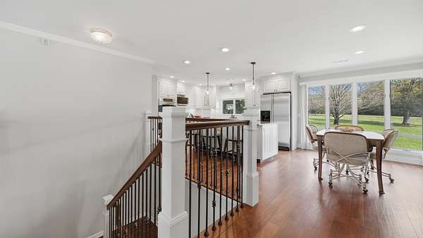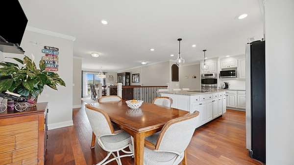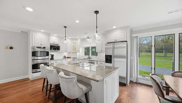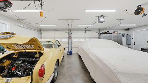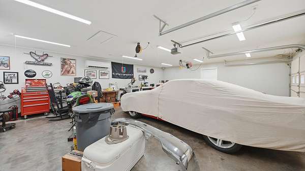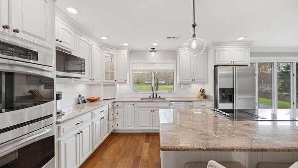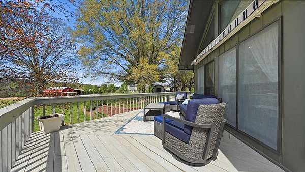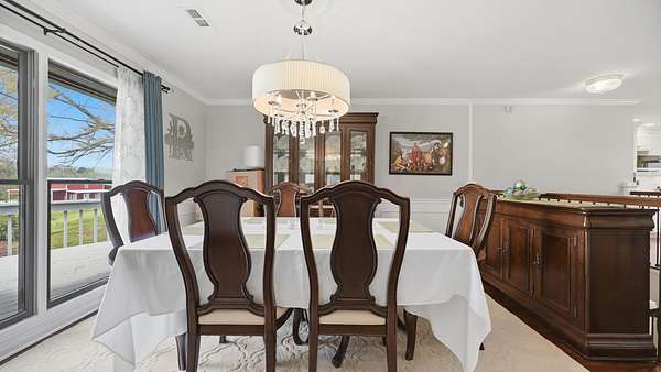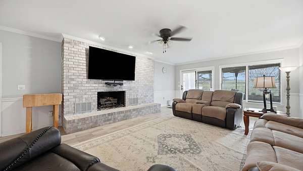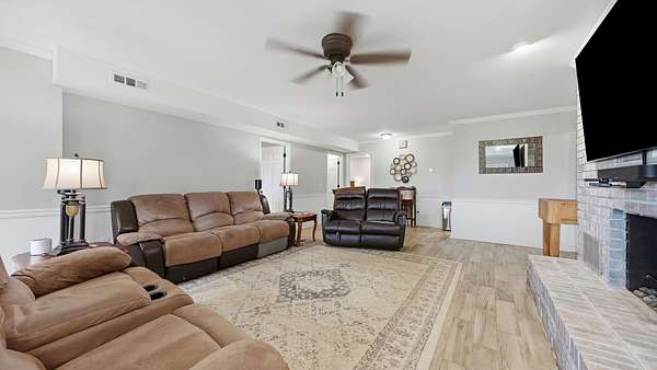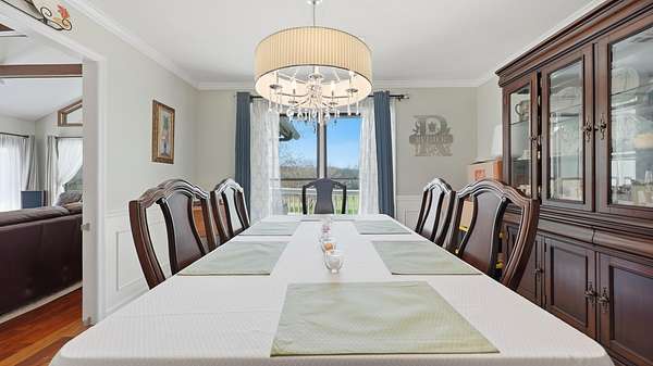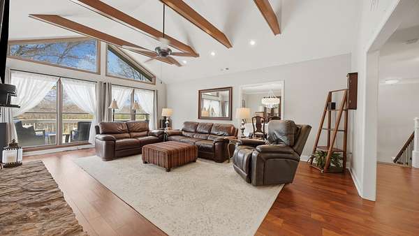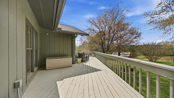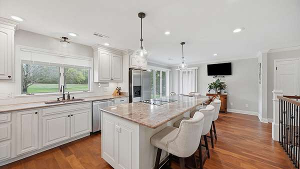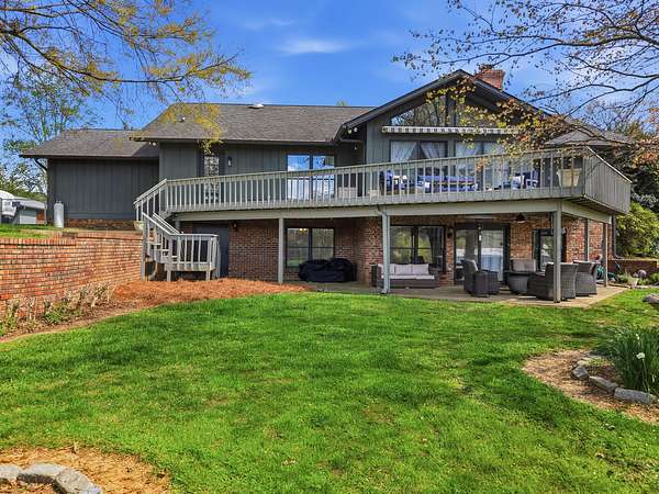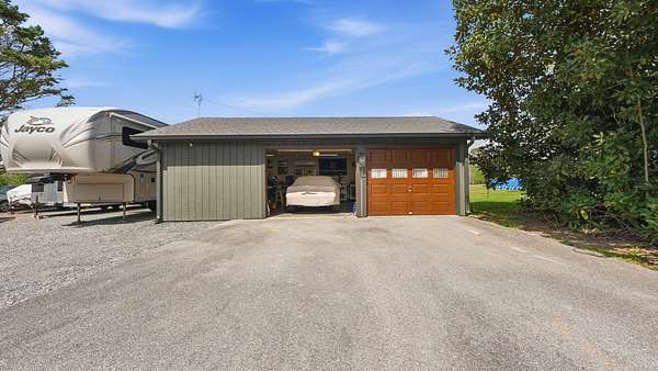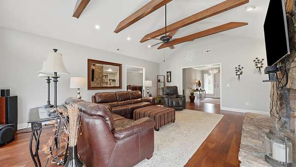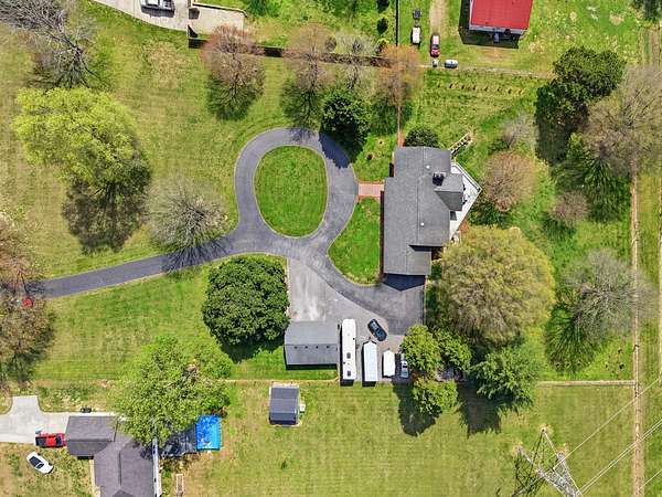 Country living at its best! This beautiful 4-bedroom, 3-bathroom home is situated on two private acres, just minutes from the shops, restaurants and the interstate. The property features a circular driveway with extensive parking for cars, trailers, RVs, a two-car attached garage, and a detached two-car garage with a workshop. Inside, you will find a spacious open floor plan with country views from every window. The great room features vaulted ceilings with wood beams, built-in shelving, floor-to-ceiling windows, and a stunning stone gas-log fireplace. The dining room opens directly to the kitchen, making it an ideal space for entertaining. Property Highlights: - Main Floor: Master suite and laundry for convenient living. - Lower Level: Three large bedrooms, a spacious great room with a fireplace, a large storage room, and a generous Mother-in-Law suite with a sitting area and bathroom access. - Outdoor Living: Fenced backyard with mature trees, a large deck with a Sunsetter retractable awning, installed deck lighting, a ceiling fan, and a basketball court. - Garage & Storage: Detached two-car garage equipped with a mini-split HVAC, 70-amp service, RV/welder plugs, and a workshop. Two additional sheds feature electricity and permanent storage racks. Recent Upgrades and Features: - Interior: New Acacia wood flooring on the first floor, new Thomasville kitchen cabinets, under-cabinet lighting, and new double wall oven and dishwasher. - Renovations: Removed popcorn ceilings, updated plumbing venting to code, and replaced all electrical switches, outlets, door knobs, and hinges throughout the house. - Lighting: New fixtures throughout, including recessed can lighting in the kitchen, great room, and basement. - Bathrooms: New quiet exhaust fans with heat options and a new vanity, sink, and faucet in the downstairs bathroom. - Systems: New water heater (2025), 400-amp service in the main house, two attic fans. - Exterior: Freshly painted with faux wood accents, stained deck, and a 60x75 parking area reinforced with commercial fabric and 144,000 lbs of rock. This home is move-in ready and perfectly equipped for both relaxation and hobbyists alike.