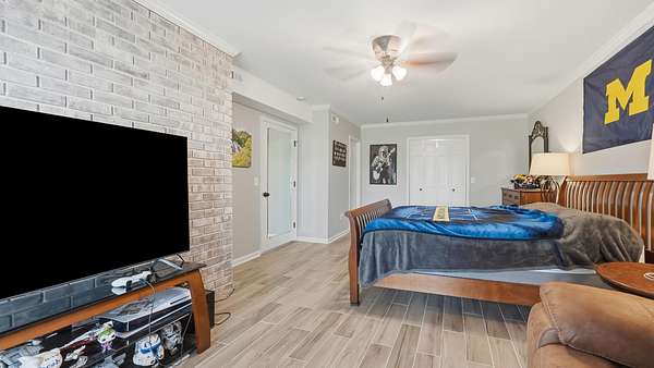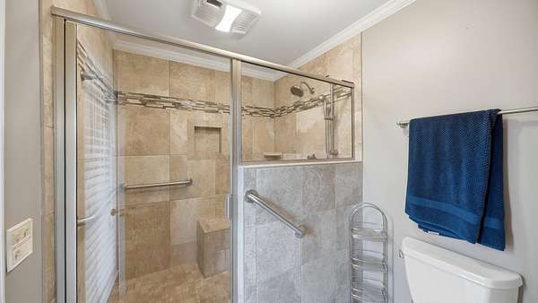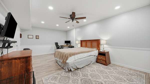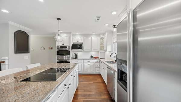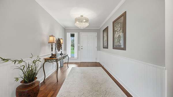 - Breakfast Nook, Cathedral Ceiling(s), Ceiling Fan(s), Chandelier, Crown Molding, Double Vanity, Eat-In Kitchen, Entrance Foyer, Granite Counters, High Ceilings, In-Law Floorplan, Kitchen Island, Open Floorplan, Pantry, Primary Downstairs, Separate Dining Room, Separate Shower, Tub/Shower Combo, Walk-In Closet(s)