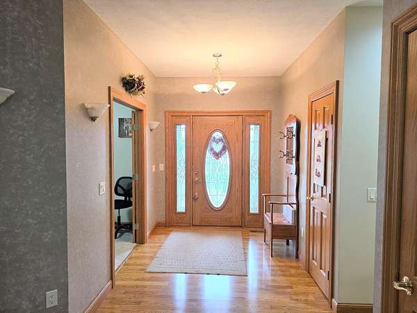 Welcome to your our own personal sanctuary nestled on 8 meticulously cared-for acres in St. Marys. This exquisite 4-bedroom, 2 full and 2 half-bath residence boasts over 2,500 square feet of inviting living space, seamlessly blending modern functionality with the serenity of country living. As you arrive at this remarkable property, you'll be embraced by a warm and inviting atmosphere. Step inside to discover generously proportioned living areas bathed in natural light, highlighted by custom oak cabinetry and solid oak doors that add timeless warmth and craftsmanship throughout the home. The thoughtfully designed layout includes a convenient main-floor laundry, making everyday living both practical and efficient. The spacious full basement presents endless possibilities, a home gym, a media room, or additional storage ideal for all your needs. This home effortlessly accommodates both everyday living and entertaining guests, ensuring every gathering is memorable. Venture outside to experience the true essence of this property, a tranquil landscape featuring a serene pond that reflects the beauty of nature, expansive open green spaces perfect for leisure activities, and a mature orchard, offering both beauty and the opportunity to enjoy your own homegrown fruit. The barn offers more than just storage or workspace it features a dedicated man cave retreat, perfect for relaxing, entertaining, or enjoying your favorite hobbies. The barn is also equipped with generator-ready wiring capable of powering the home as an additional backup, and an overhead door on a garage door opener for added convenience. Picture yourself savoring quiet mornings by the water, with the gentle sounds of nature surrounding you, or hosting gatherings in this enchanting setting. Recent mechanical updates include a new HVAC system and whole-house generator (both less than 6 months old), a water heater replaced about 2 years ago, and professionally cleaned.