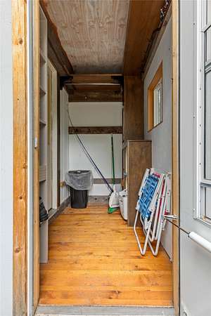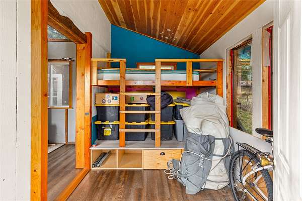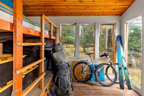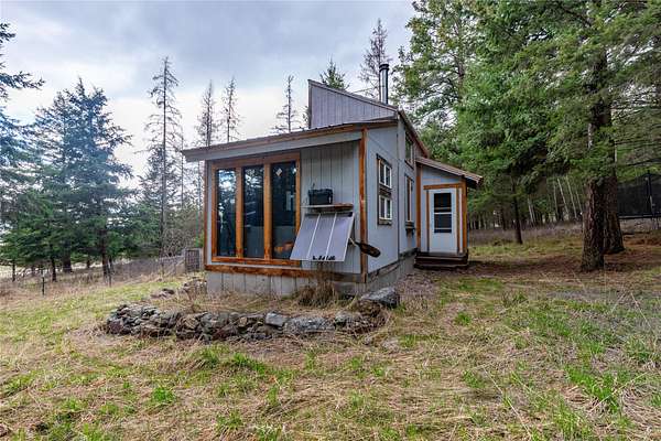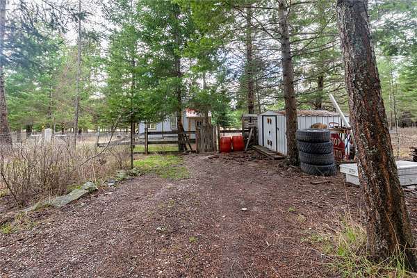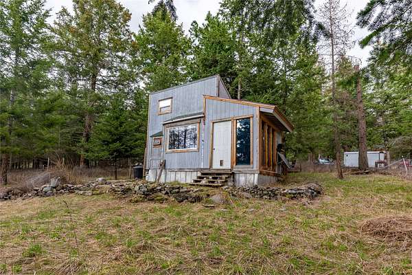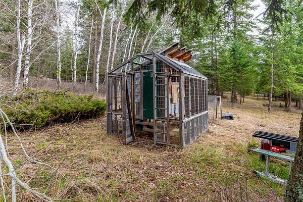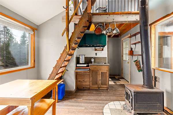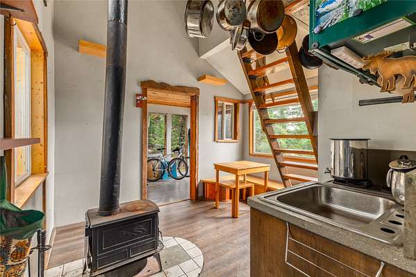 Tucked into five peaceful, wooded acres, this 450 sq. ft. off-grid cabin offers privacy, simplicity, and near by wilderness access, while still being a short, paved drive to town. The land features a gentle slope with a mix of open spaces and mature trees, creating a serene and usable setting. The cabin includes multiple sleeping areas - a cozy loft and separate bedroom, light-filled interior, a wood stove, kitchenette, mudroom, and custom woodwork, and an attached composting toilet that adds to the home's sustainable appeal. Continue the tradition of year round living, enjoy it as a seasonal retreat, or use it as the perfect basecamp while building your dream home, with a storage shed and chicken coop completing the offering.