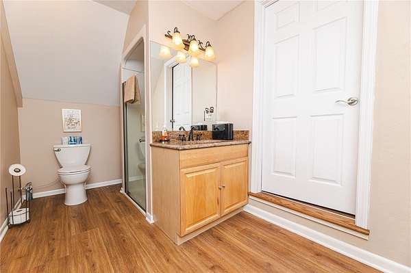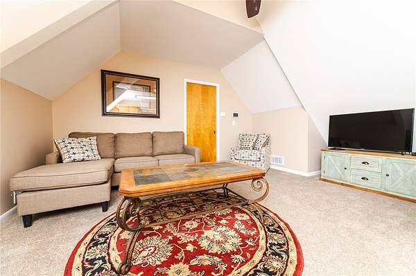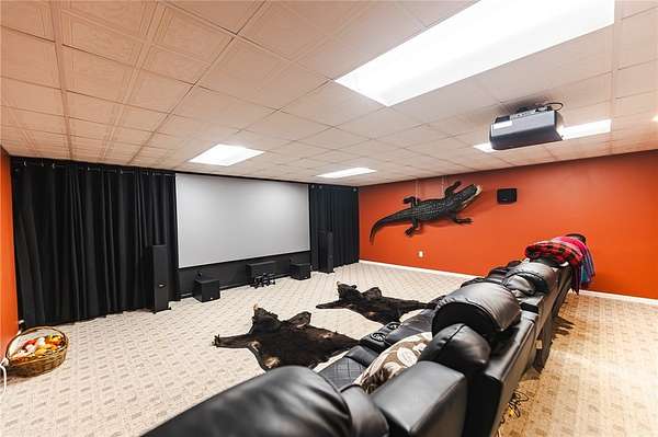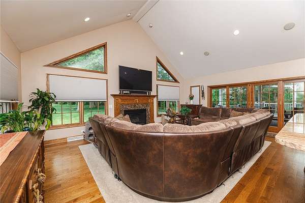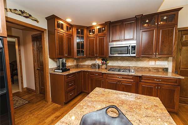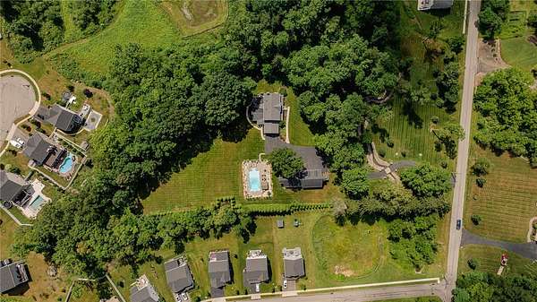 Area School District. A winding driveway and bridge crosses a peaceful stream upon entering this secluded property surrounded by a variety of mature trees. This 4 Bedroom 3.5 Bath home has numerous features. An open floor plan, kitchen with granite counters, large island, cherry cabinets with soft closure and a walk-in pantry. The real oak flooring flows from the front entrance through the kitchen, breakfast nook and vaulted family room, 7,000 square feet of finished space. All designed to enjoy nature's ever changing landscape and natural lighting. The private office boasts another gas fireplace with built-in cabinetry, shelving and desk. The master suite has a dual 6' vanities, a soaking tub, walk-in shower and heated floors, 10 foot movie theatre room, inground salt water pool . 1,500 Square foot in-law quarters, 2 bedroom, 1 full bath, family room.