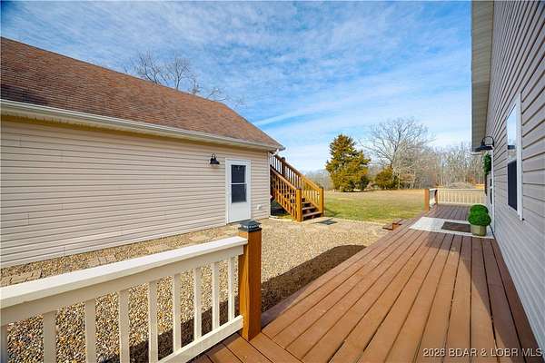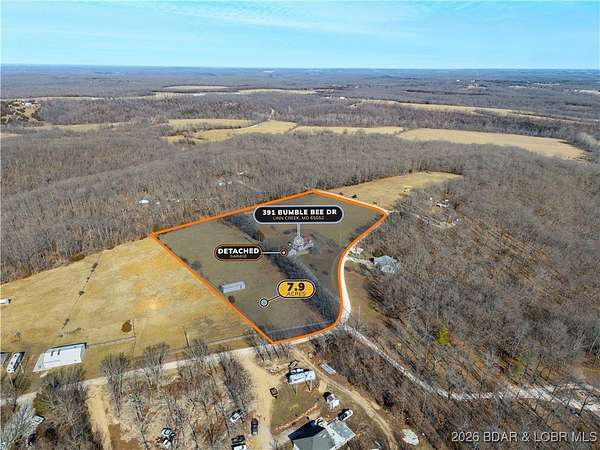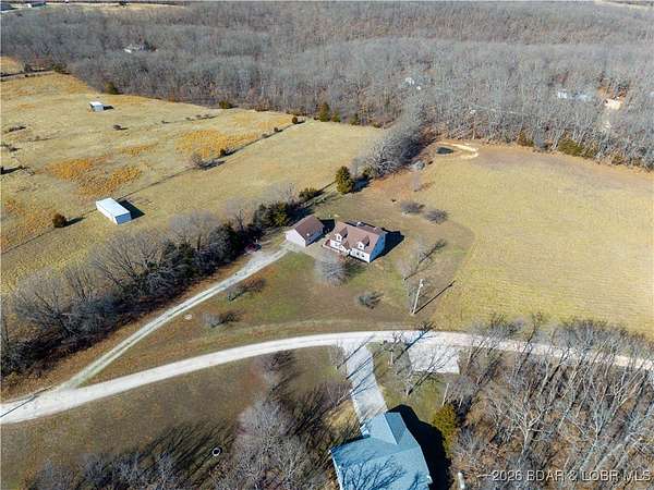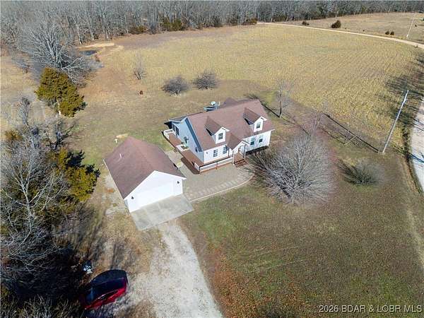 Just under 8 acres of picture-perfect countryside, this property offers the privacy and serenity so many buyers are searching for-but rarely find. Surrounded by open fields and mature trees, the setting invites you to slow down and truly settle in. The home has been fully remodeled and offers comfortable main-level living, thoughtfully designed for ease, longevity, and everyday enjoyment. From the welcoming front porch to the updated interior, every detail has been completed so you can simply arrive and feel at home. An oversized garage with a bathroom provides added convenience, along with an upper-level space ideal for storage or future finish-out for additional living area. A large outbuilding offers flexibility for equipment, hobbies, or extra storage. Ideally located between Osage Beach and Camdenton, this property delivers peaceful seclusion without sacrificing access to shopping, dining, and lake-area amenities. This is more than a home-it's space to breathe, live well, and put down roots.