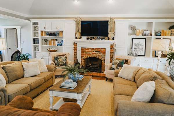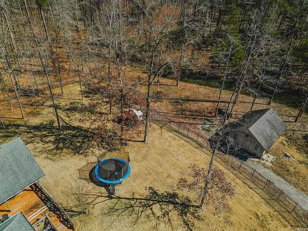A true find--this 3-bedroom, 2-bath brick home combines in-town convenience with privacy you rarely see. Set on a back corner lot with approximately 4.3 mostly wooded acres, the property offers space and seclusion while still being just minutes from schools, medical facilities, and local amenities. The light-filled open-concept kitchen and great room is centered around a gas fireplace, and 9-foot sliding glass doors lead to a deck overlooking the gently sloped backyard--perfect for relaxing or entertaining. Kitchen, bathrooms, and flooring have been thoughtfully updated within the last 10 years. Additional features include a small pond, an iron and brick fence enclosing part of the backyard, and a versatile storage building/workshop at the rear. With a beautifully maintained backyard and expansive wooded acreage, this home offers a rare combination of comfort, privacy, and location.