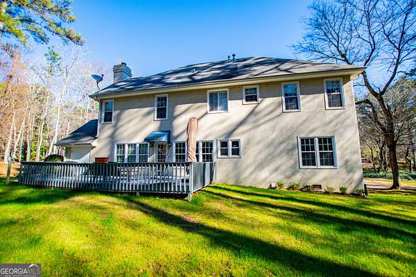 Stunning traditional home in one of Carrollton's best neighborhoods. This one has so much space and a simply gorgeous yard and back deck. On the main level, you'll find a 2-story foyer, formal den, & formal dining, all with hardwood floors, powder room, & family room open to the kitchen. The den has a cozy fireplace surrounded by built ins and a wall of windows for great natural light. The upstairs has an expansive owner's suite with walk in closet and en suite bath, 3 additional bedrooms and another full bath. The estate sized allows the house to sit over 200 feet from the road with a huge front yard and private back yard. There is an attached utility room out back for extra storage, and loads more storage upstairs. Everyone loves the amenities in Smokerise. From the utility field, covered pavillion with picnic tables, lake, creek, playground, and tennis court, there is something for everyone here! This one is ready for you to make it your own!