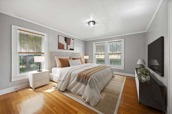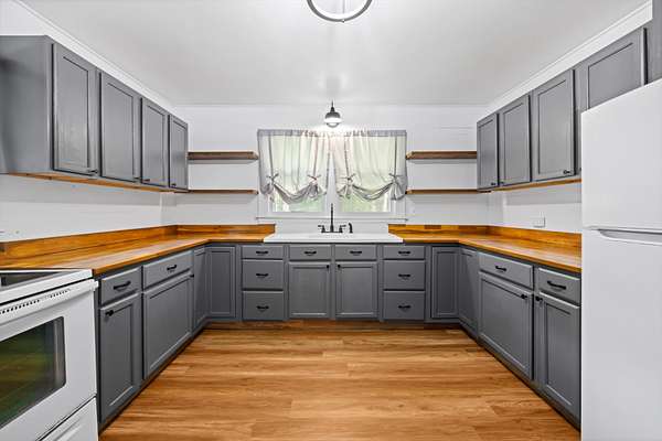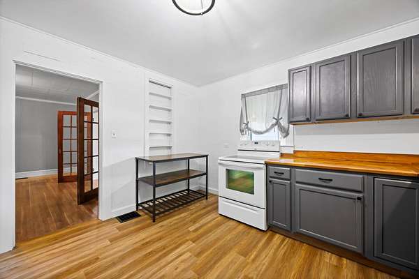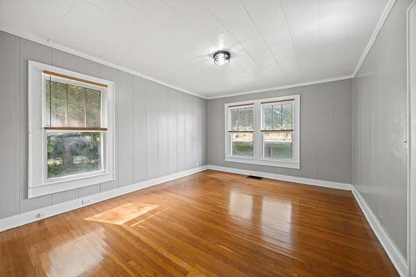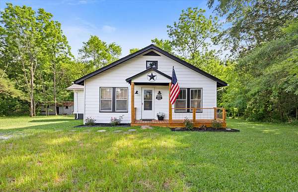 This property offers USDA loan eligibility, allowing qualified buyers to purchase with no down payment. Full of original character, it features hardwood floors, shiplap walls, a farmhouse sink, and a cozy fireplace. Recently remodeled, the home boasts modern updates both inside and out. The basement provides additional storage or workshop space, while the expansive five-acre lot—with a creek running through it—offers plenty of room for livestock, gardening, or simply enjoying the outdoors. Ideal for homesteading, the property includes a natural water source and ample space. Its highway frontage also provides excellent visibility and access, making it suitable for residential use or light commercial potential.