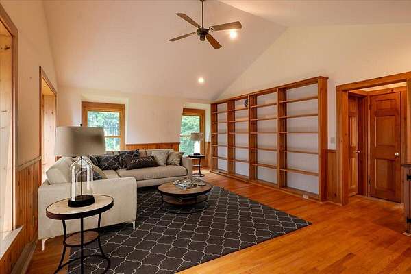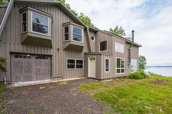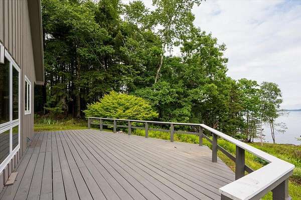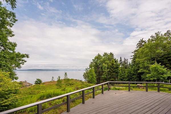 Plum Point Cottage: Contemporary Island Home set on a hill with Breathtaking Ocean Views. Wake up to island life at Plum Point Cottage, a coastal retreat designed by Architect Christopher Glass. With 400+/- feet of rocky waterfront, this contemporary island setting offers stunning sunrises over Bounty Cove and Penobscot Bay from your private deck. The first floor welcomes you with a small mud room and features an open-concept kitchen and dining area with new marble tile floors, a living room with built-ins, and a mechanical room with laundry. Enjoy more ocean views from the spacious second floor including a family room with more built-ins and a wet bar and two bedrooms with a full bath. Watch the moon rise though the "moon window" during the winter solstice; the moon light will shine through and fill the foyer with light. Enjoy star gazing at night through the sky lights and Venus rising in the morning. The sun deck matches the roof line providing full shade during the summer solstice. A detached two-car garage with new garage doors provides ample space for cars, small boats or a workshop, with stairs leading to a large unfinished storage area above. Rest easy knowing that the roof on the house and garage was recently shingled, the exterior of both buildings was vapor blasted and painted, all new PDQ doors and Marvin windows have been recently installed along with 3 new insulated garage doors. The house is well insulated with walls that are 1 foot think. This 2.7+/- acre property has a natural landscape inner mixed with the remains of old cutting gardens above the rocky coastline and a private beach, offering your own island escape. Stay connected with 1 gibibyte upload and download speed fiber optic internet. The beautiful island of Islesboro is a 20-minute ride from the mainland town of Lincolnville, accessed by a public car ferry, water taxi or private boat or small airplane. FMI contact Virginia (Ginnie) Hess | Cates Real Estate | 401-222-9583