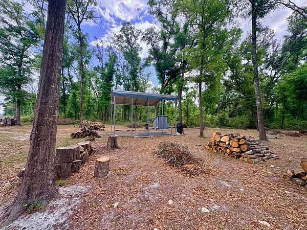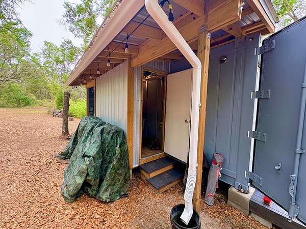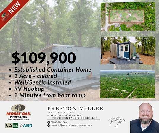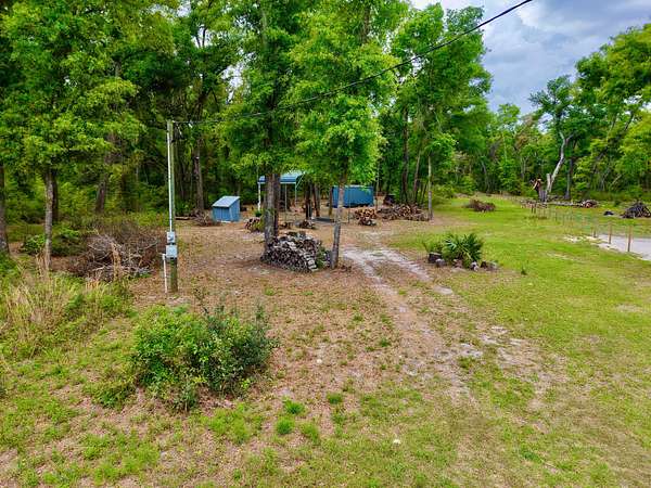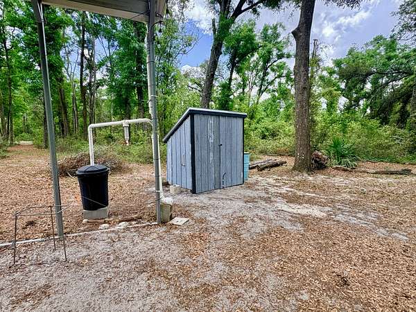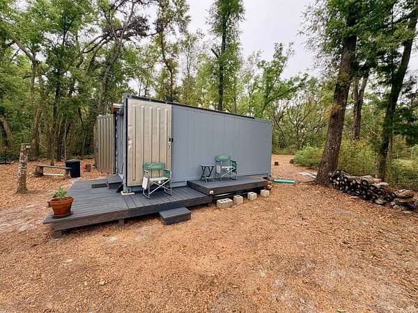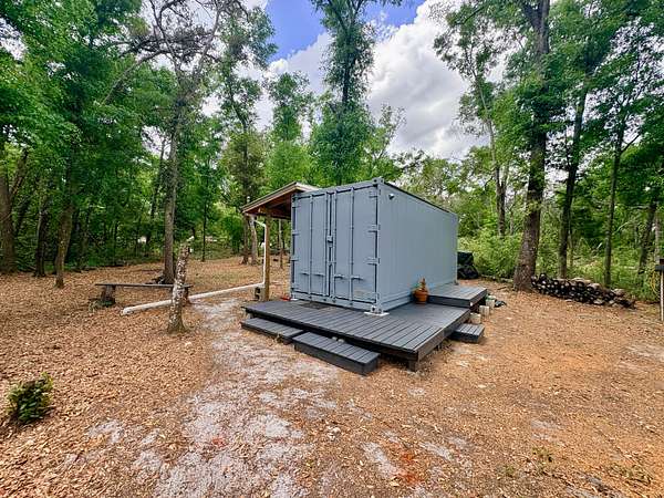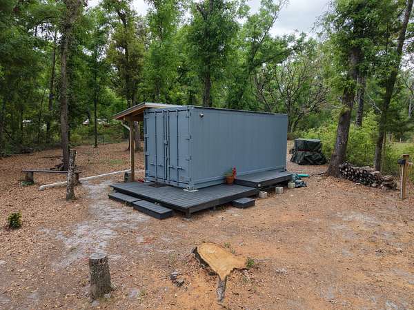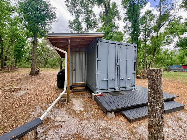 Escape to the Suwannee with this unique 1-acre improved property just 2 minutes from the Suwannee River boat ramp. Set up for immediate enjoyment, the property features a fully equipped insulated ex-reefer container home with a stainless steel interior and thoughtful remodel, offering a functional and comfortable retreat for weekends, seasonal use, or a basecamp for river adventures. Inside, the container home includes a shower, compost toilet, TV, stainless table, couch/bed, shelving, and electric service with 120V AC and 12V DC RV capability. The property is further improved with an existing well, septic system, established electric, RV hookups, and a carport sized for RV parking, making it a rare ready-to-use setup with valuable infrastructure already in place. An attached shed plus interior and exterior storage provide added convenience for gear, tools, and supplies. Whether you're looking for a private getaway, a fishing retreat, or a versatile recreational property close to the water, this one offers a hard-to-find combination of location, utility, and character in a beloved Suwannee River area. Buyer to verify all details, zoning, flood zone, and property use with county and local authorities.