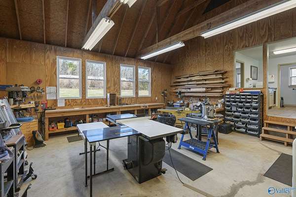Est $894/mo3.88 acres with approximately 1120 SF workshop/building built in 2007! You can watch the train go by! This property includes a heated wood-working shop with an office, and kitchenette with a sink and microwave. Ask about septic system information. Sale includes all woodworking equipment, outbuildings and mowers (some items excluded in attic and storage room) So many possibilities within minutes to the city of Huntsville or Scottsboro!