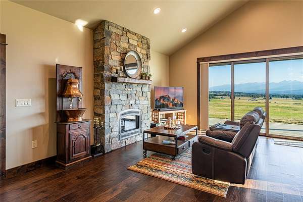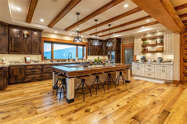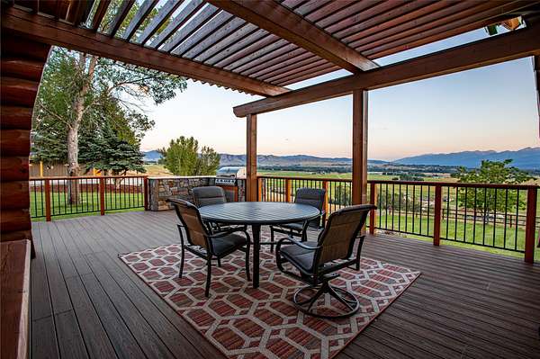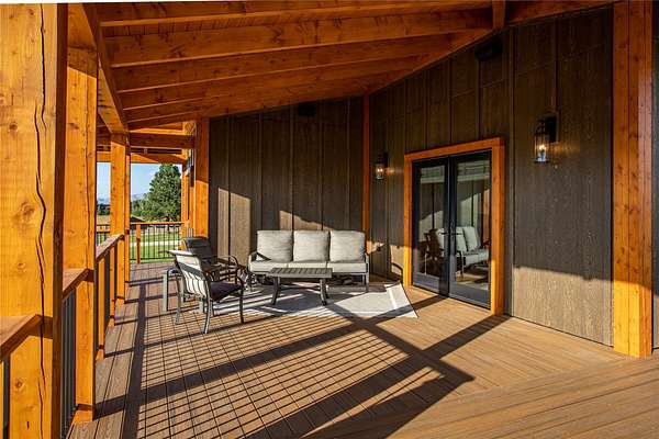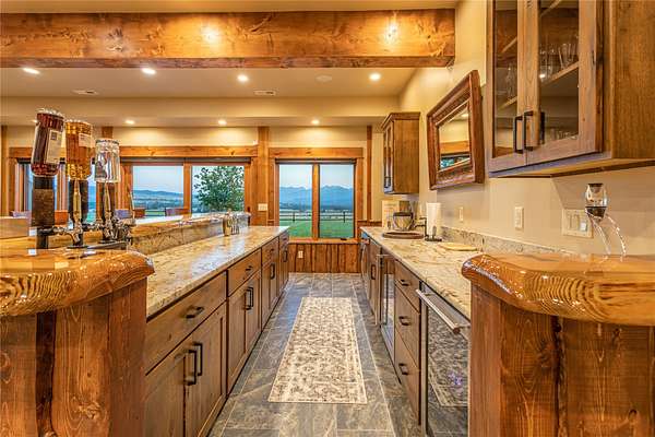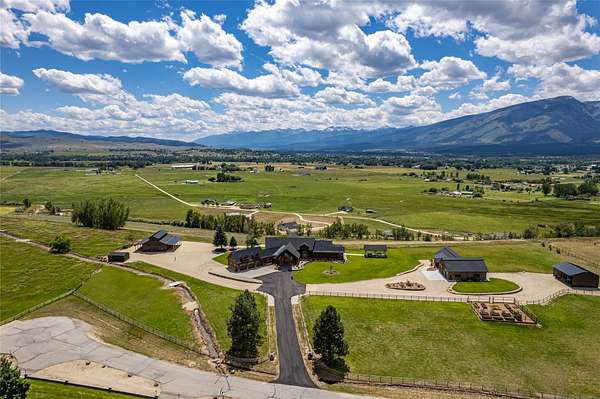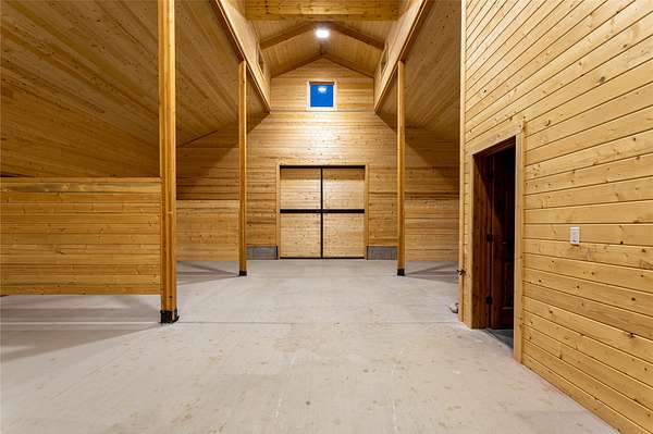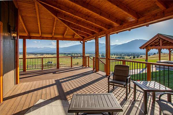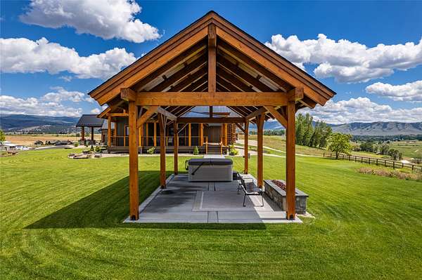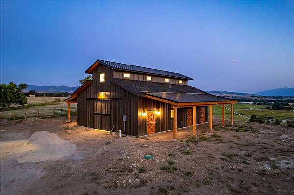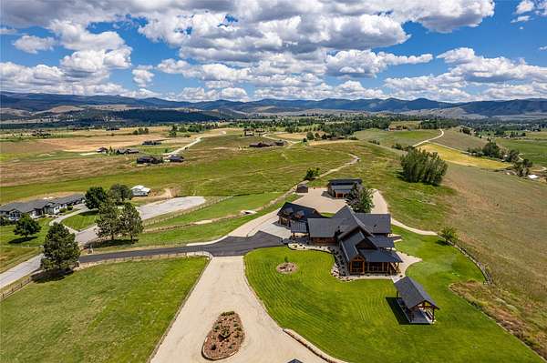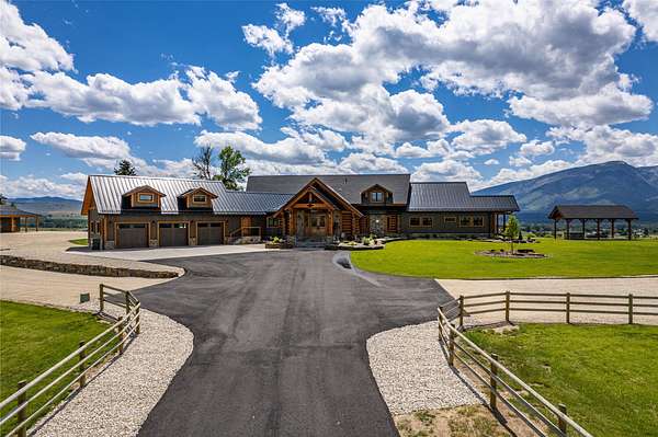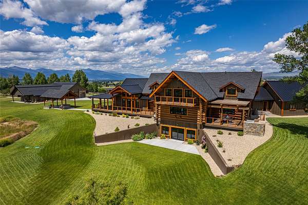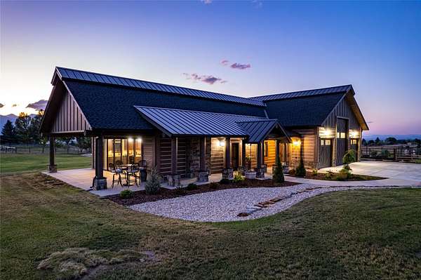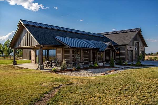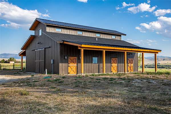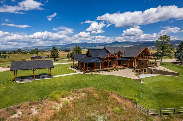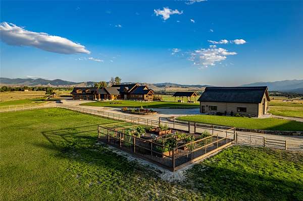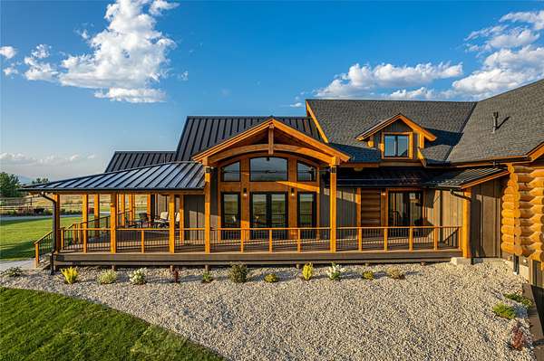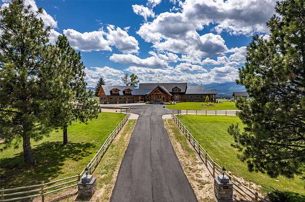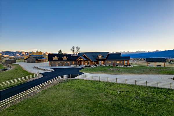 This newly constructed executive home is a masterpiece of design and craftsmanship, featuring stunning views of both the Bitterroot and Sapphire Mountains. Located just outside of Hamilton, MT, on an expansive 27.79 acres, this property offers the perfect blend of luxury, functionality, and natural beauty. Being sold turn key and fully furnished, the main home, spanning an impressive 7,881 sq. ft, is a the perfect combination of modern amenities with rustic charm. The original log cabin on the property served as the foundation, around which the home was built and expanded. Impeccable attention to detail and thoughtful construction ensure that every aspect of this home is a work of art. Inside you will find intricate wood detailing, myrtle hardwood flooring, and exposed beams that add a touch of elegance and warmth throughout. High-end finishes and fixtures elevate the living spaces, providing a deluxe living experience and comfortable environment. The main home offers 5 bedrooms and 5 bathrooms, providing ample space. The chef's kitchen is next level, with a massive island with an eating bar, granite and maple countertops, a 6-burner gas stove with a griddle, custom cabinets, and a generously-sized pantry. The primary suite, located on the main level, comes with vaulted ceilings, access to the covered deck, a large walk-in closet, and a luxurious bath with a soaking tub and custom tiled shower with dual shower heads. For entertainment and relaxation, head to the lower level, where a custom wet bar with granite counters and a stone fireplace await. Keep yourself fit in the gym room complete with a sauna, perfect for unwinding after a day of activities. The exterior of the main home is equally impressive, featuring manicured landscaping, an expansive covered deck, and a covered patio with a hot tub, offering the ideal setting to enjoy Montana's scenic beauty year-round. A charming 2 bedroom and 1 bathroom guest house on the property provides a comfortable living area for any visitor. The open concept seamlessly blends the well appointed kitchen and living room. The attached 3 car garage, featuring an RV bay, offers convenience for guests with larger vehicles. With picturesque surroundings and beautiful landscaping, the guest house provides a private and welcoming space.This is an ideal horse property, with a well-equipped barn catering to all of their needs. The barn features 5 spacious horse stalls and a convenient wash stall, making grooming easy, while the well-organized tack room keeps equipment easily accessible. For added convenience, a bathroom is included in the barn. Conveniently located within a short drive to Hamilton and only 15 minutes from the renowned Stock Farm Club, this property allows you to enjoy both privacy and easy access to local amenities and recreational opportunities. If you've been searching for an upscale, spacious, and thoughtfully designed home in the heart of Big Sky Country, this property is your answer.