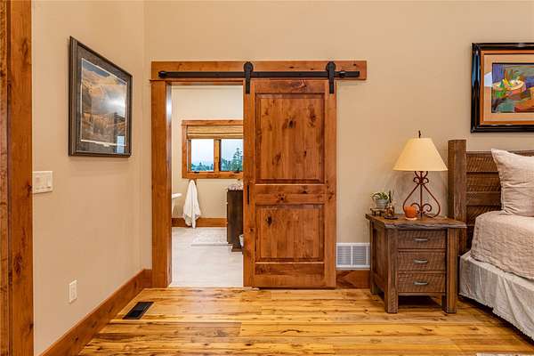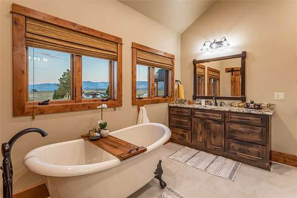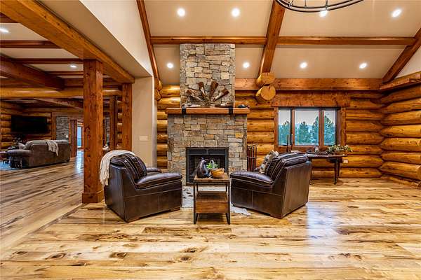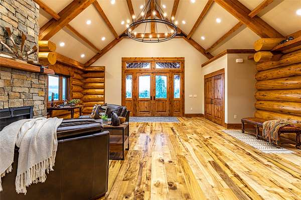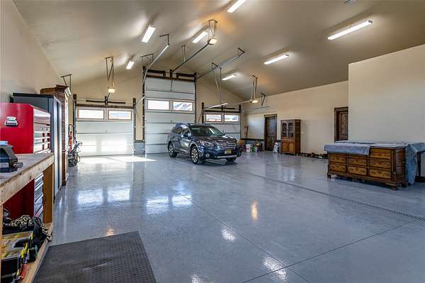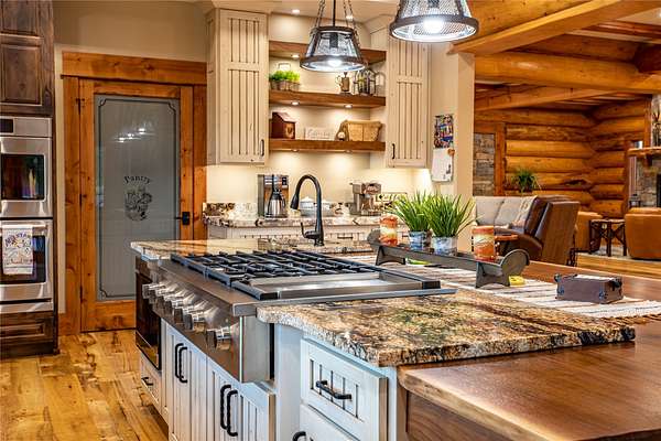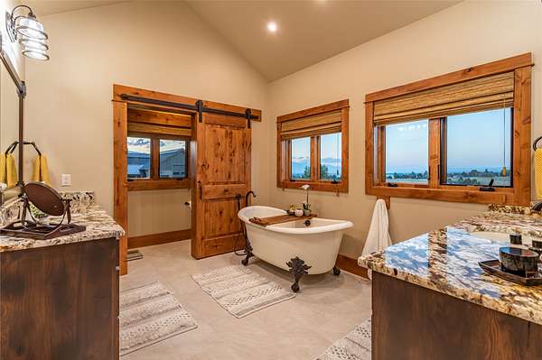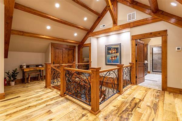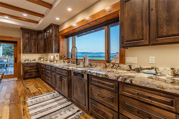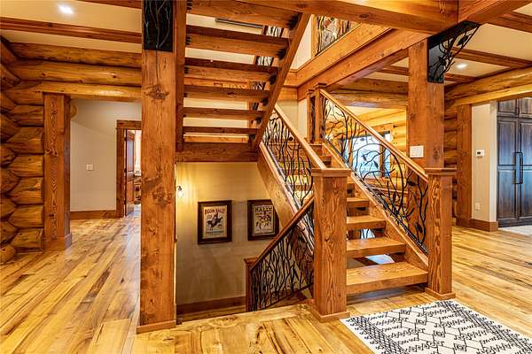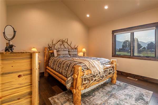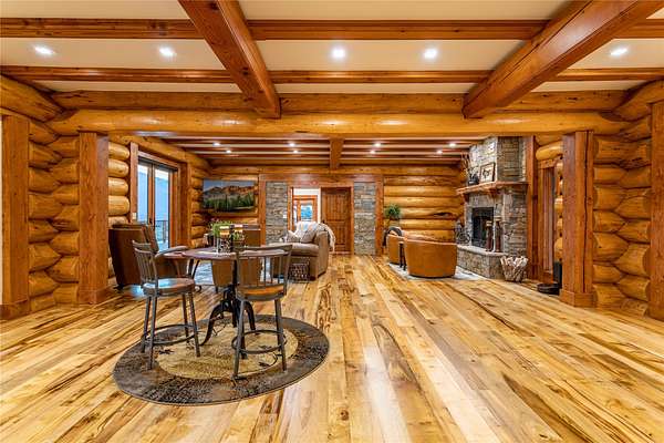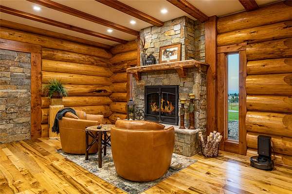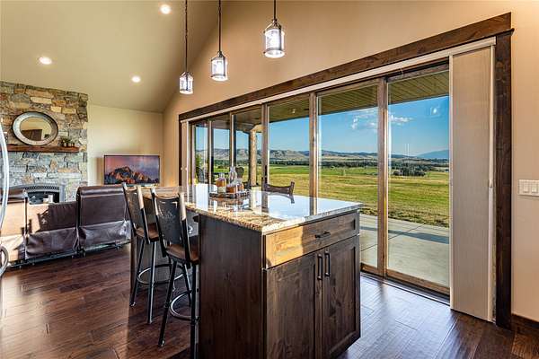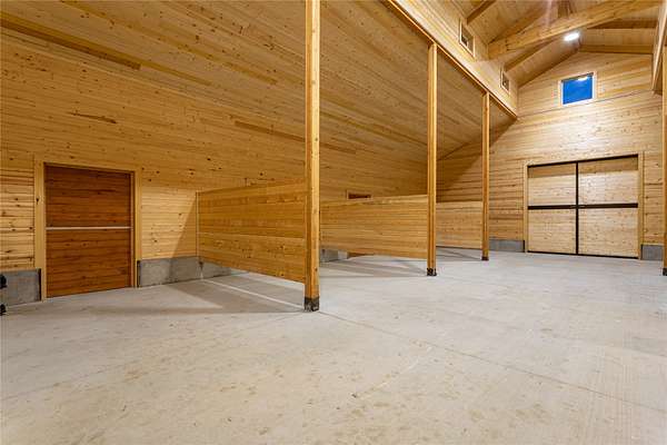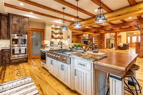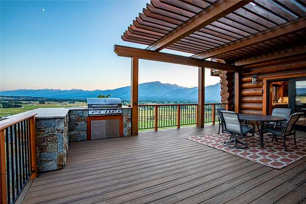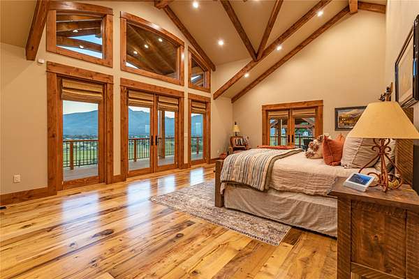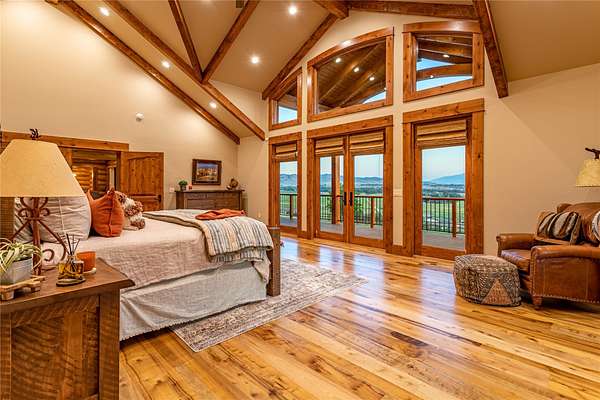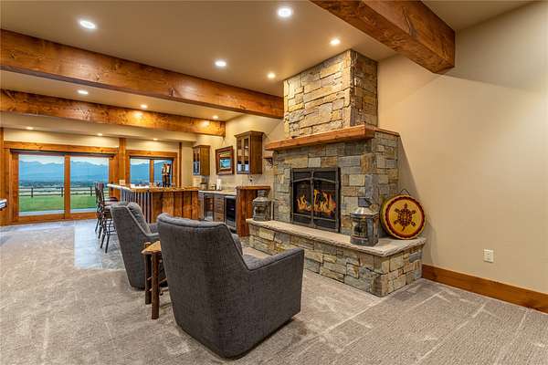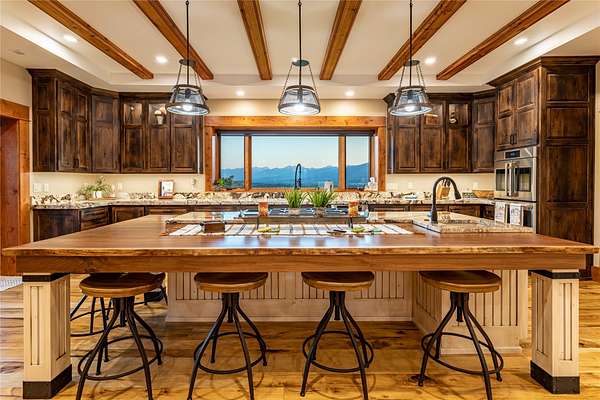 This newly constructed executive home is a masterpiece of design and craftsmanship, featuring stunning views of both the Bitterroot and Sapphire Mountains. Located just outside of Hamilton, MT, on an expansive 27.79 acres, this property offers the perfect blend of luxury, functionality, and natural beauty. Being sold turn key and fully furnished, the main home, spanning an impressive 7,881 sq. ft, is a the perfect combination of modern amenities with rustic charm. The original log cabin on the property served as the foundation, around which the home was built and expanded. Impeccable attention to detail and thoughtful construction ensure that every aspect of this home is a work of art. Inside you will find intricate wood detailing, myrtle hardwood flooring, and exposed beams that add a touch of elegance and warmth throughout. High-end finishes and fixtures elevate the living spaces, providing a deluxe living experience and comfortable environment. The main home offers 5 bedrooms and 5 bathrooms, providing ample space. The chef's kitchen is next level, with a massive island with an eating bar, granite and maple countertops, a 6-burner gas stove with a griddle, custom cabinets, and a generously-sized pantry. The primary suite, located on the main level, comes with vaulted ceilings, access to the covered deck, a large walk-in closet, and a luxurious bath with a soaking tub and custom tiled shower with dual shower heads. For entertainment and relaxation, head to the lower level, where a custom wet bar with granite counters and a stone fireplace await. Keep yourself fit in the gym room complete with a sauna, perfect for unwinding after a day of activities. The exterior of the main home is equally impressive, featuring manicured landscaping, an expansive covered deck, and a covered patio with a hot tub, offering the ideal setting to enjoy Montana's scenic beauty year-round. A charming 2 bedroom and 1 bathroom guest house on the property provides a comfortable living area for any visitor. The open concept seamlessly blends the well appointed kitchen and living room. The attached 3 car garage, featuring an RV bay, offers convenience for guests with larger vehicles. With picturesque surroundings and beautiful landscaping, the guest house provides a private and welcoming space.This is an ideal horse property, with a well-equipped barn catering to all of their needs. The barn features 5 spacious horse stalls and a convenient wash stall, making grooming easy, while the well-organized tack room keeps equipment easily accessible. For added convenience, a bathroom is included in the barn. Conveniently located within a short drive to Hamilton and only 15 minutes from the renowned Stock Farm Club, this property allows you to enjoy both privacy and easy access to local amenities and recreational opportunities. If you've been searching for an upscale, spacious, and thoughtfully designed home in the heart of Big Sky Country, this property is your answer.