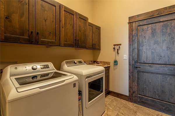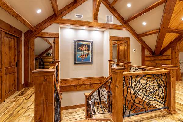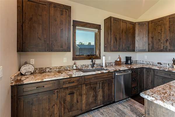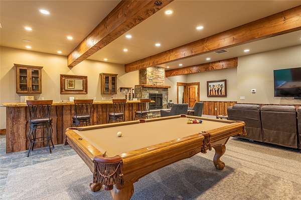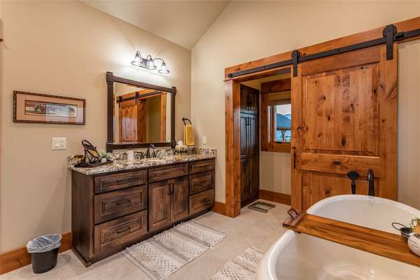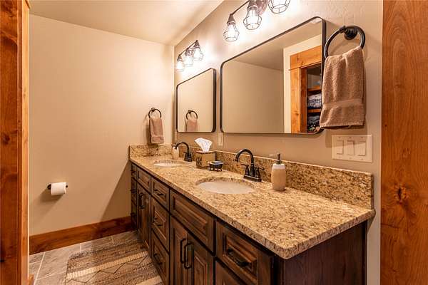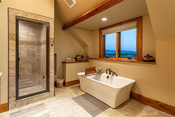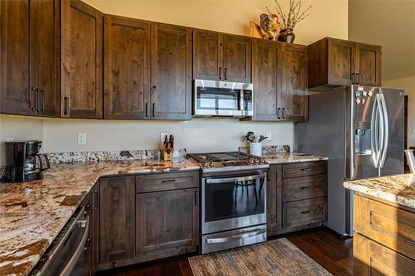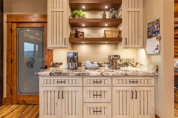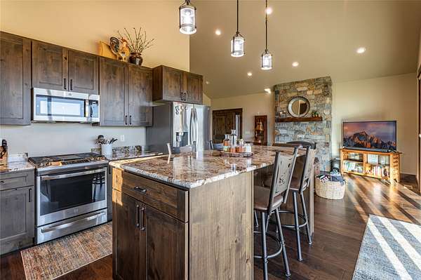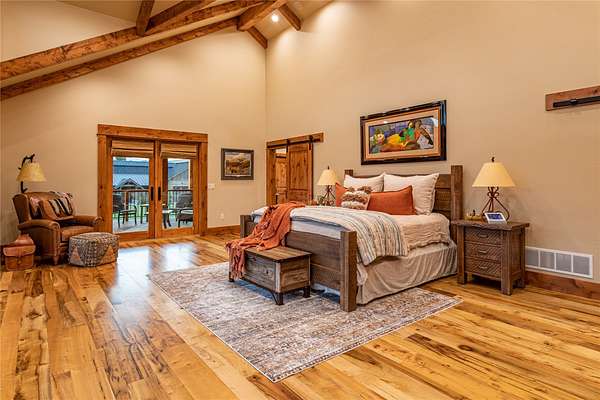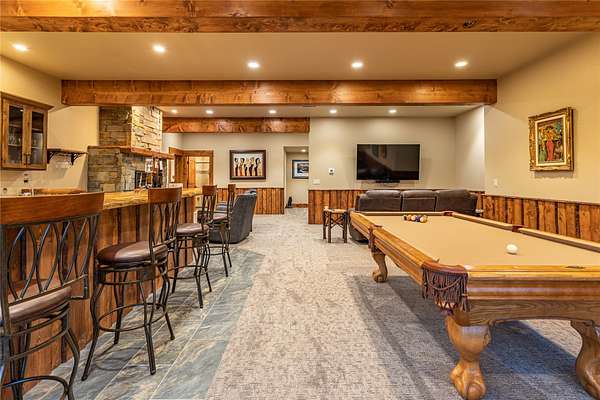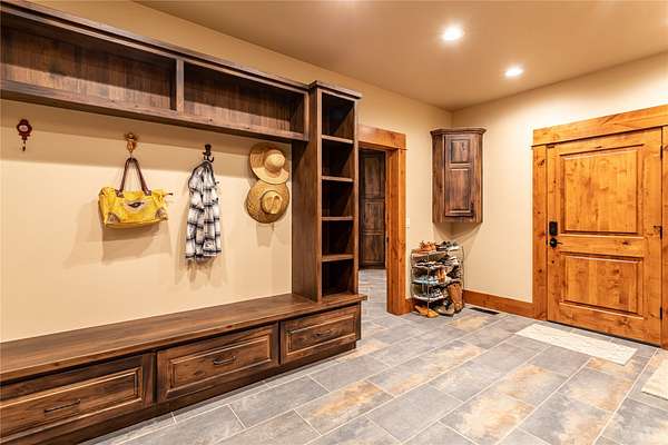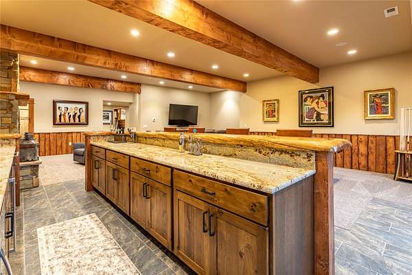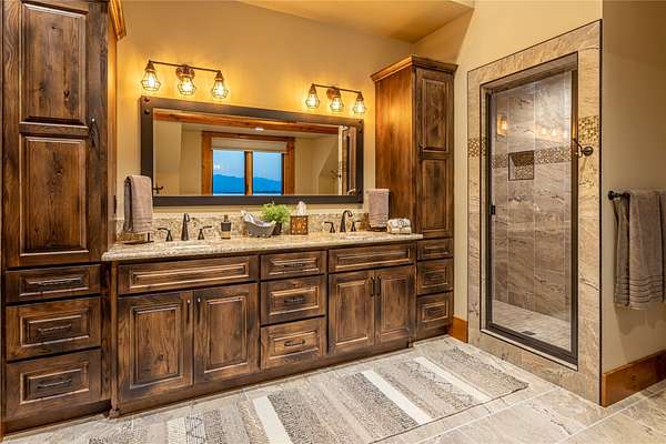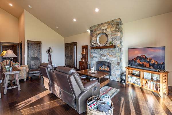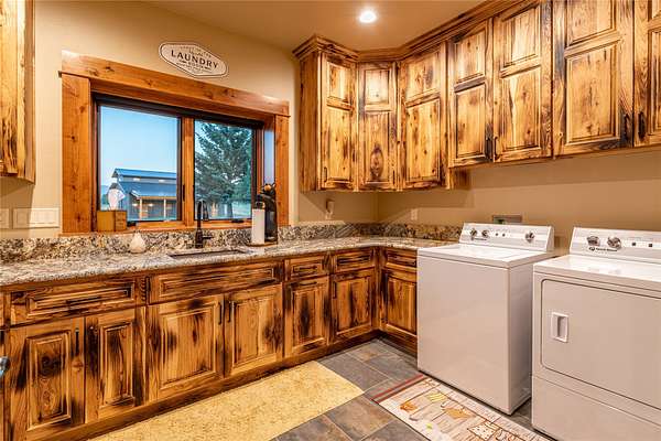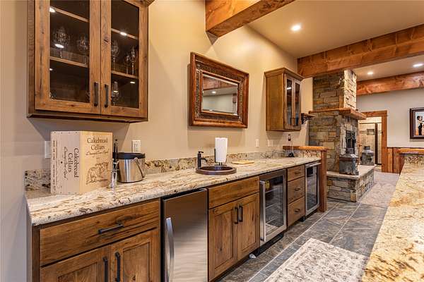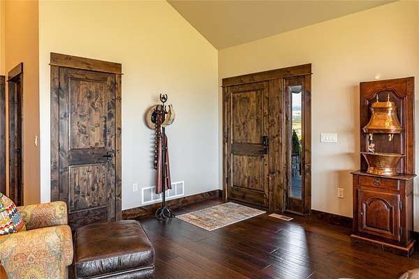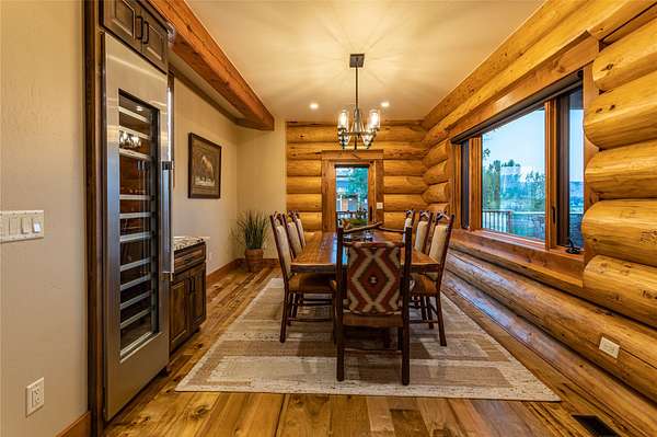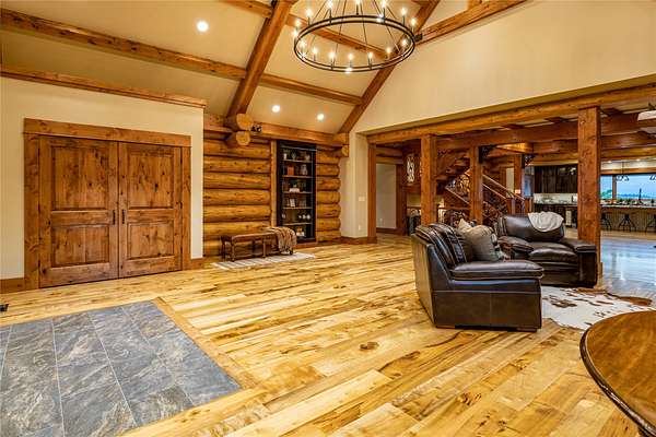 This newly constructed executive home is a masterpiece of design and craftsmanship, featuring stunning views of both the Bitterroot and Sapphire Mountains. Located just outside of Hamilton, MT, on an expansive 27.79 acres, this property offers the perfect blend of luxury, functionality, and natural beauty. Being sold turn key and fully furnished, the main home, spanning an impressive 7,881 sq. ft, is a the perfect combination of modern amenities with rustic charm. The original log cabin on the property served as the foundation, around which the home was built and expanded. Impeccable attention to detail and thoughtful construction ensure that every aspect of this home is a work of art. Inside you will find intricate wood detailing, myrtle hardwood flooring, and exposed beams that add a touch of elegance and warmth throughout. High-end finishes and fixtures elevate the living spaces, providing a deluxe living experience and comfortable environment. The main home offers 5 bedrooms and 5 bathrooms, providing ample space. The chef's kitchen is next level, with a massive island with an eating bar, granite and maple countertops, a 6-burner gas stove with a griddle, custom cabinets, and a generously-sized pantry. The primary suite, located on the main level, comes with vaulted ceilings, access to the covered deck, a large walk-in closet, and a luxurious bath with a soaking tub and custom tiled shower with dual shower heads. For entertainment and relaxation, head to the lower level, where a custom wet bar with granite counters and a stone fireplace await. Keep yourself fit in the gym room complete with a sauna, perfect for unwinding after a day of activities. The exterior of the main home is equally impressive, featuring manicured landscaping, an expansive covered deck, and a covered patio with a hot tub, offering the ideal setting to enjoy Montana's scenic beauty year-round. A charming 2 bedroom and 1 bathroom guest house on the property provides a comfortable living area for any visitor. The open concept seamlessly blends the well appointed kitchen and living room. The attached 3 car garage, featuring an RV bay, offers convenience for guests with larger vehicles. With picturesque surroundings and beautiful landscaping, the guest house provides a private and welcoming space.This is an ideal horse property, with a well-equipped barn catering to all of their needs. The barn features 5 spacious horse stalls and a convenient wash stall, making grooming easy, while the well-organized tack room keeps equipment easily accessible. For added convenience, a bathroom is included in the barn. Conveniently located within a short drive to Hamilton and only 15 minutes from the renowned Stock Farm Club, this property allows you to enjoy both privacy and easy access to local amenities and recreational opportunities. If you've been searching for an upscale, spacious, and thoughtfully designed home in the heart of Big Sky Country, this property is your answer.