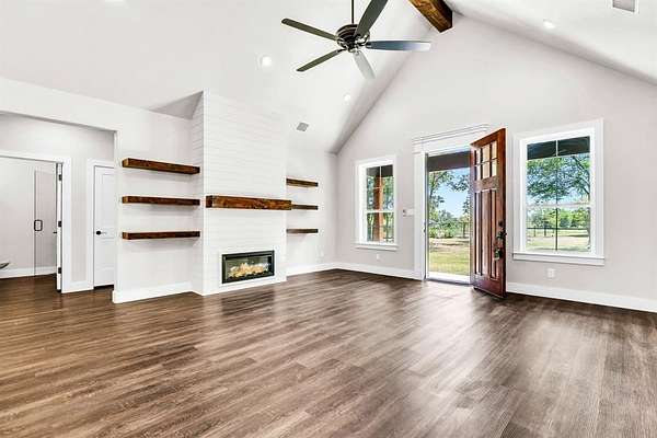 Welcome to this stunning new construction modern farmhouse-style home with barndominium-inspired design in Bristol, offering over 2 acres of peaceful country living just 25 miles from Dallas. Tucked beneath mature trees, this 3-bedroom, 2.5-bath home blends space, privacy, and thoughtful design—creating the perfect balance between quiet surroundings and everyday convenience. Inside, 1,994 square feet of open-concept living features high ceilings, abundant natural light, and custom finishes that feel both warm and elevated. The spacious living area is designed for gathering and connection, while the split-bedroom layout provides a private retreat in the primary suite with secondary bedrooms positioned on the opposite side. A convenient half bath for guests and a large laundry room with direct access to the primary closet add to the home’s functional appeal. Step outside and imagine mornings with coffee under the trees, afternoons spent enjoying your acreage, and evenings unwinding under wide-open Texas skies—whether hosting, relaxing, or simply taking in the quiet. Located in Ferris ISD and near the scenic bluebonnet trails, Sugar Ridge Winery, and Bristol General Store, with easy access to the historic downtowns of Ennis and Waxahachie, this home offers a rare opportunity to enjoy modern country living without sacrificing proximity to the city. Priced approximately $10,000 below recent appraised value, offering immediate value for the next owner—making it easy to picture your next chapter here.
