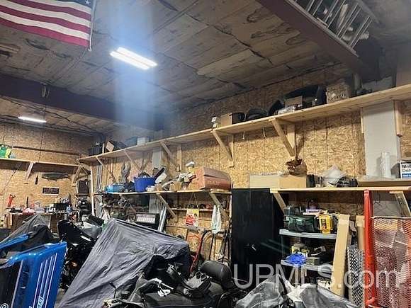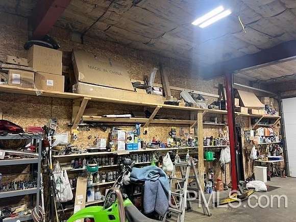 Unique commercial property with living quarters. Approx. 4400 total square feet with 4 different sections. There is uniquely designed apartment with approx. 1200 square feet of living space with a quarter bath and laundry on main level and full bath and bedroom upstairs(all appliances included in sale). There is a commercial garage with approx. 1440 square feet that could be rented but seller currently used as workshop for his contracting business and to work on vehicles. There is also a half bath and economical heating system in this garage area. The commercial compressor and car lift are also included in the sale. The other 2 parts are a commercial shop with approx. 1440 square feet which is heated by wood burning system and a 20x24 garage. Each of the 4 areas have their own commercial door entrance. The entire structure is steel beam and masonry constructed with approx. a 2 foot slab throughout. Brick exterior. Excellent paved parking areas. The entire electrical service has been updated. There are separate power and gas boxes for each area. Plenty of room with 2 acres of land to storage shed or pole building in back if desired. Seller is a contractor and could build to suit also the open area that could be more living space or a shop etc. The parking lot has been recently seal coated. Seller has extensively cleaned out and repainted shop area which is an open canvas for another apartment, business or shop etc.