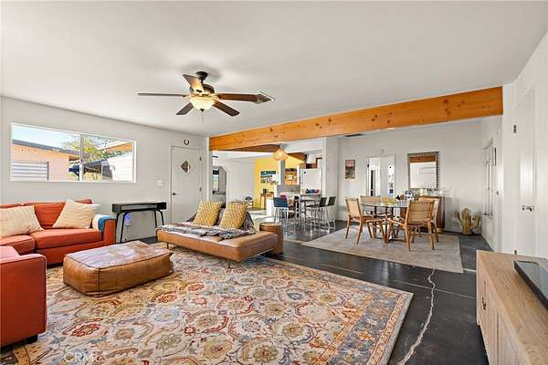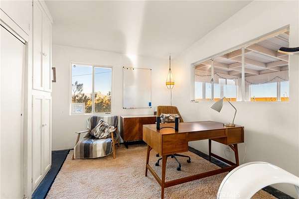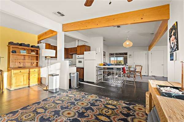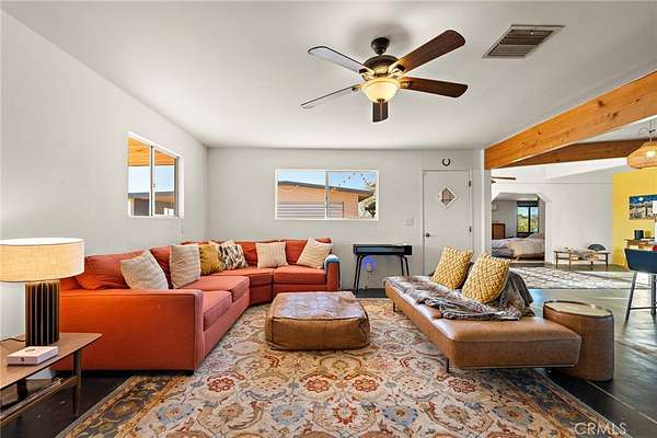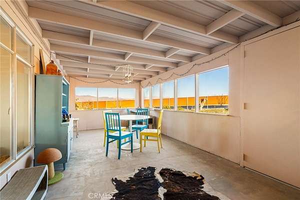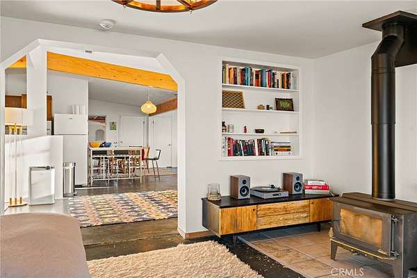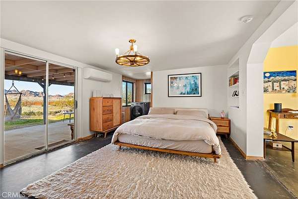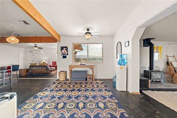 Priced for a quick sale!! Perched on 5 scenic acres in Wonder Valley and facing the iconic Godwin Mountain, this approximately 1,400 square foot 2-bedroom, 1-bath home offers space, privacy, and exceptional value--truly one of the best deals in the area. Inside, a second living room functions as a flexible primary bedroom retreat complete with a cozy fireplace, while two additional spacious bedrooms, a huge living room, generous dining area, and a well-appointed kitchen provide comfortable everyday living. A structural beam installation has opened the main living space into an inviting open-plan layout, and mini-split systems are installed throughout the home for efficient year-round comfort.