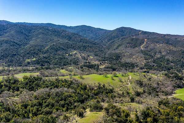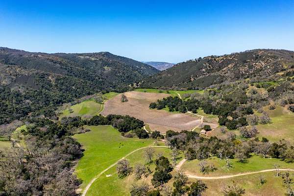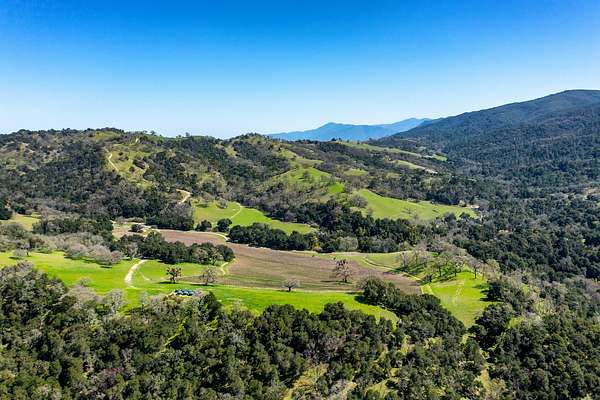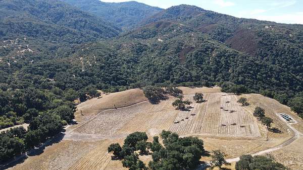 Awe inspiring views from the 785 +/- acre Bell Ranch in the desirable Carmel Valley. Homesite near creek and open field. 16 acres have been irrigated in the past. Would be great for a crop or irrigated pasture. Water storage tanks on hillside will make it possible for a gravity flow system. Room for expansion if the new owner desires. The owners now have a cattle operation. Running about 50 mother cows year-round. Check back for video coming soon.