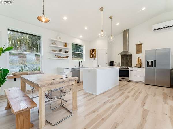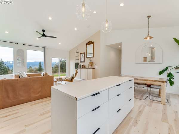 Privacy. Privacy. Privacy! Get ready to fall in love with this stunner-a 3-bedroom + office (or 4th bedroom), 2-bath home set on nearly 8 acres of peaceful, serene acreage. It's the kind of place that feels like your own personal getaway, every single day. Step into a welcoming entry with modern, classic flooring that opens to a bright, spacious great room with vaulted ceilings and gorgeous natural light. The open layout makes life easy-whether you're hosting, helping with homework at the table, or catching up while dinner's on, thanks to the generous dining space right off the kitchen. The kitchen is the heart of it all, featuring a huge island, walk-in pantry, extra cabinetry, and stainless steel appliances-made for real life and effortless entertaining. The living room flows out to the back deck where you can grill, unwind, and watch the sun settle over the hills. Your oversized primary suite connects to a fresh, modern bath with a large tile shower and custom vanity-beautiful, functional, and just the right size to keep life simple. And the oversized garage is a standout with a heated office-perfect for hobbies, a home business, a studio, or a quiet work-from-home setup that's close... but still feels separate. Outside, you'll find true country-living potential: electric car charging hookup, chicken coop, garden space, play set, and room to dream bigger-maybe that shop you've been thinking about? Plus RV parking and extra space for cars, trailers, toys, and all the "someday" plans you're ready to make real. Only 5.5 miles from I5 commute!!