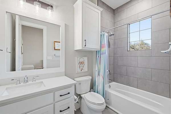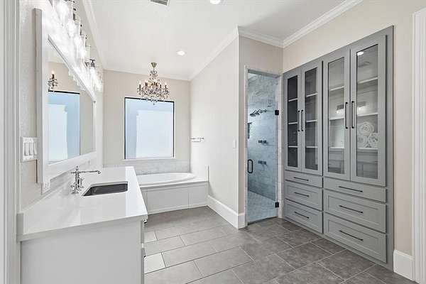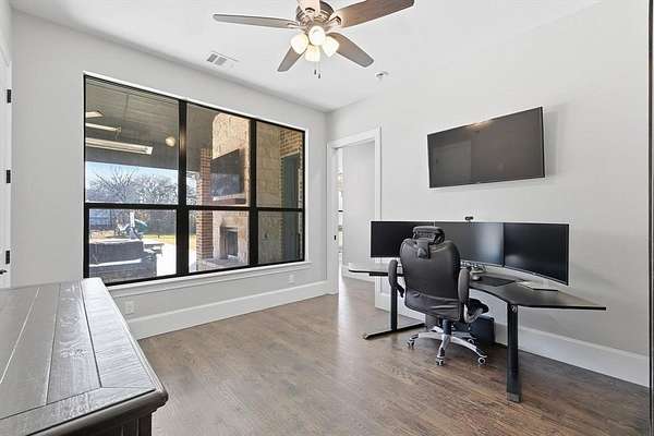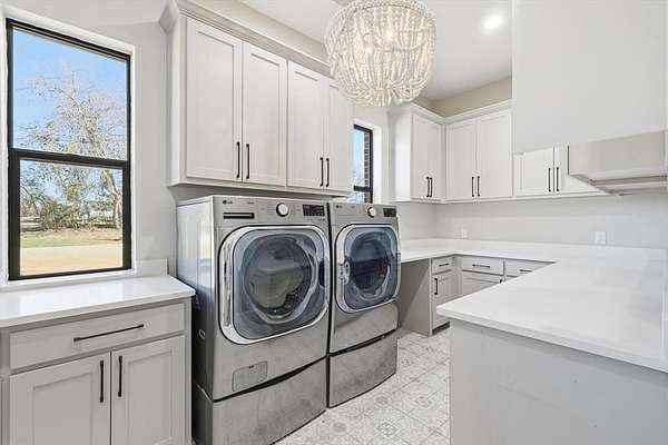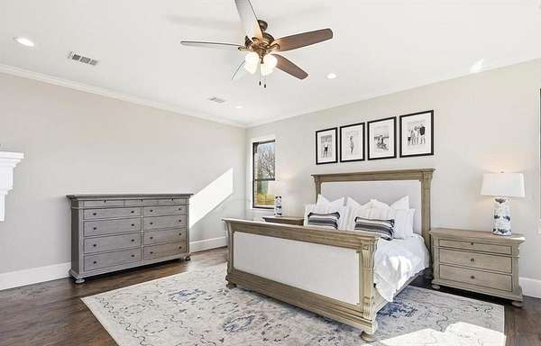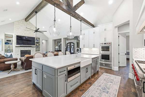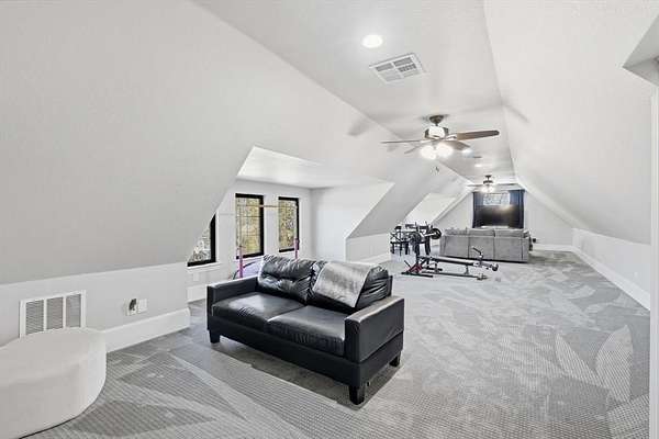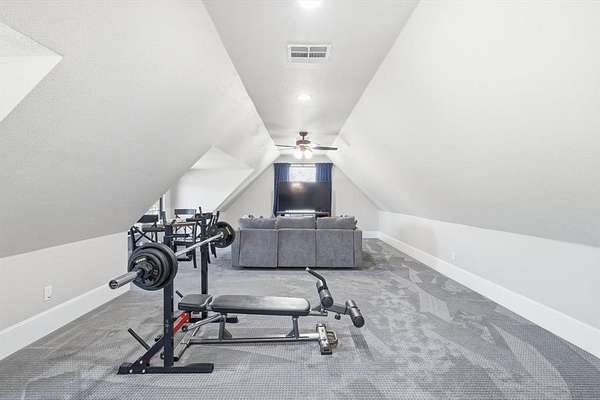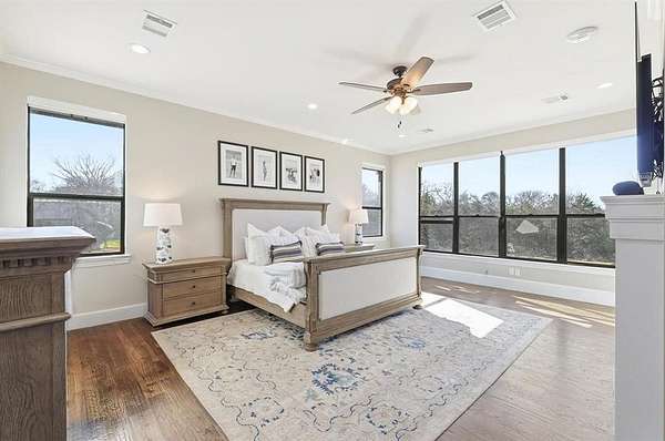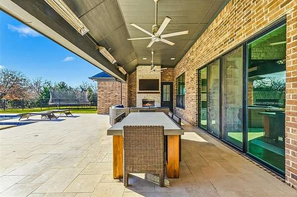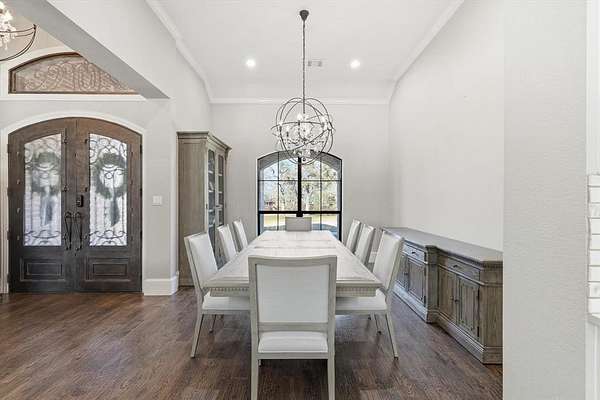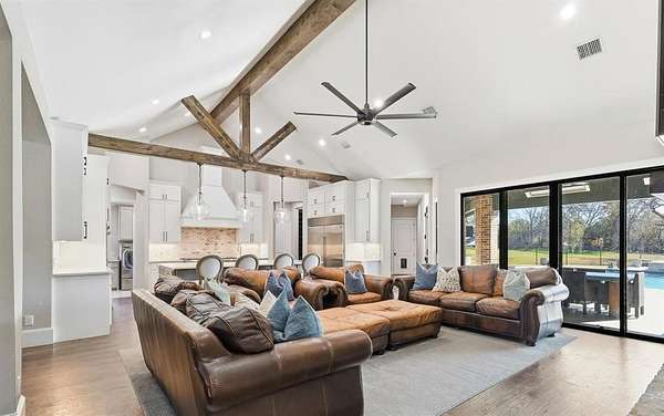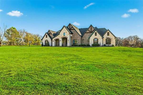 Stunning custom estate in Flower Mound offering 3.093 acres of private, unrestricted land with no HOA, just steps from Grapevine Lake, Merrill Park, and Twin Coves Marina. Built in 2021, this thoughtfully designed custom home combines modern construction with functional luxury. The main level features five bedrooms, each with access to a full bath, providing exceptional flexibility for families, guests, or multigenerational living. A well appointed chef’s kitchen anchors the heart of the home, designed for both everyday living and entertaining with generous workspace and seamless flow into the main living areas. Upstairs, an approximately 1,000 square foot bonus room offers versatile space for a game room, media room, or additional living area, complemented by a fully decked attic for abundant storage. Additional interior highlights include an oversized utility room and thoughtful details throughout that reflect the quality of a true custom build. The outdoor setting is equally impressive, featuring a resort-style pool and spa, expansive outdoor kitchen and living area, private pond, and dedicated RV or Boat parking. A 950 foot deep well supports irrigation and outdoor needs, while the four car garage provides ample space for vehicles, storage, or hobbies. Ideally located near shopping, dining, and exemplary schools, with DFW International Airport less than 10 miles away, this exceptional Flower Mound property offers privacy, acreage, modern construction, and access to North Texas lake living