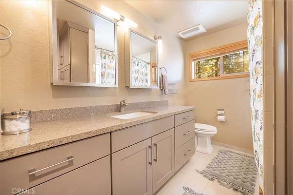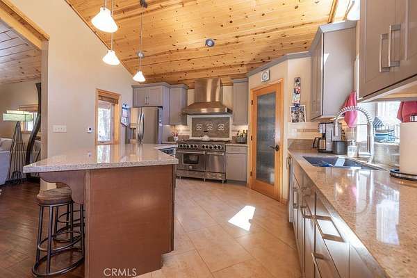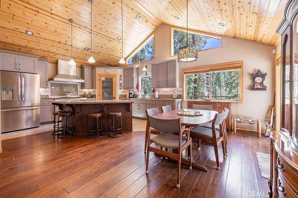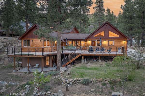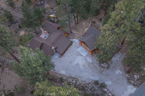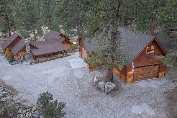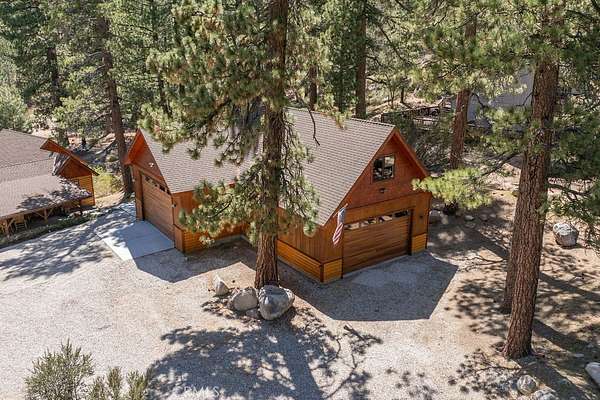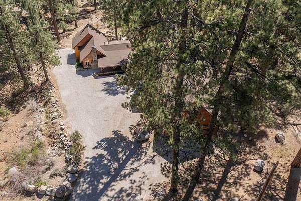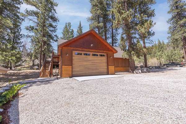 A rare blend of serenity, style, and space awaits on this enchanting 3.5+ acre (fully usable) retreat, where over 580' of Grout Creek flows gently along the rear of the property--bringing the beauty of nature right to your doorstep. Thoughtfully remodeled from top to bottom, this captivating 3-bedroom, 2-bath home offers refined mountain living with modern comforts throughout. Step inside to discover radiant heated floors in the kitchen and bathrooms, an A/C system in the living room and kitchen, and a spacious layout ideal for both quiet mornings and lively gatherings. Outside, expansive tuff flex decking invites you to sip coffee beneath the pines or dine under the stars, surrounded by the soft sounds of the creek. An impressive detached 6 to 8 car garage provides ample storage for toys and tools, while the upstairs bonus room--complete with water hook-ups--offers potential for a studio, guest space, or private office. Below the main house, a bonus rec/game room adds even more space for fun and entertainment. Sustainability and self-sufficiency shine with a fully owned solar system and well water on site--ideal for those craving both luxury and independence. Located near Captain John's Marina and the west boat ramp, this rare offering combines the best of adventure and escape. Whether you're seeking a weekend getaway or a full-time haven, this is where your story begins--rooted in nature, wrapped in elegance, and designed to inspire.