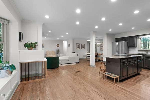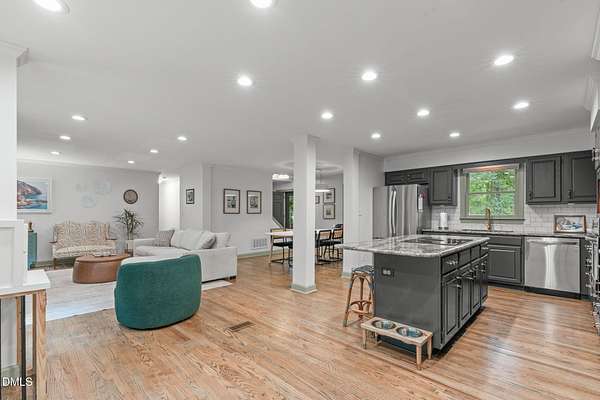 Discover your opportunity to own a classic, fully updated from top to bottom adorable home on LAND in the quickly growing Apex/New Hill area, one of Wake County's most desirable locations! Protected by 3.5+ surrounding acres and the Jordan Pointe neighborhood, 3912 Old US 1 Hwy is the perfect choice for those who want privacy and easy access to all the downtown features this community has to offer! Make your way down the gravel driveway, and you'll see 3912 Old US 1 nestled in the trees, inviting you to come take a seat on the charming yet functional front porch. As you approach the expanded driveway, take note of the ample vehicle, camper, and boat parking and an extra storage/trailer space. Once on the property, you are visually treated with mature landscaping and serene Carolina pine views at every turn! The new larger driveway leads directly to the 2-car garage, which holds space for vehicles and all your hobbies with 2 interior closets. A fresh epoxy coating on the floors for durable, long-lasting protection has been added as well. The full interior of this home with 4 beds and 2.5 baths has been updated to include an open and easily accessible floor plan with refinished hardwood floors, brand-new carpeting, and designer tile floors throughout. The kitchen boasts an island with seating for four and room for an eat-in area with built-in storage, a dog crate, and large pull-out drawers. The kitchen cabinets are updated with enamel paint and new pulls, stainless steel appliances with a double-door refrigerator, an ice maker, in-refrigerator water, a built-in wall oven, and an electric 5-burner cooktop in the island. Room for a microwave or second oven exists in the space. This kitchen holds room for plenty of cabinet space and a floor-to-ceiling pantry with custom swing shelves. Continue through to the dining room that easily seats eight and opens seamlessly into the main level for entertaining and everyday comfort, and you'll see access to the large rear deck that has enough space for multiple seating arrangements and a grill. Al fresco dining at its finest! As you walk down the hall towards the primary suite, don't miss the under-stair storage with hooks, a bench, and more storage. A little further and you'll encounter the easily accessible hall bath with an updated vanity, wall mounted mirror with tone-changing LED light, a shiplap accent wall, and an OVE Smart Touch Toilet. Beyond the hall bath is your main-level laundry room, adjacent to the primary suite, with ample storage and a new Samsung Smart Washer and Dryer. Upon entering the primary suite, you'll notice enough space for a seating area or writing desk. With the large walk-in closet with built-ins at your fingertips, your bedroom leaves room to spread out! With light-adorned walls and large windows the serene space offers a place to unwind with calming paint colors and designer lighting. The primary bath is a treat with separate matching marble-top vanities, wall-mounted mirrors with tone-changing LED lights, a deep soaking tub, and a large walk-in shower with a fully tiled corner bench and double niches. A water closet room with an OVE Smart Touch Toilet exist in the space for easy access and privacy. Large format tile floors flow through the primary bathroom and walk-in closet as one footprint. To access the second level, you have one of two options: your first choice is through the rear staircase accessible from the kitchen/garage space that goes directly to the expansive fourth bedroom or straight up the main staircase, which leads to the upper-level landing, two large bedrooms, a walk-in finished storage closet with floor-to-ceiling shelving, and a full bath with double vanity, wall-mounted mirror with tone-changing LED light, linen closet, fully tiled shower with sliding glass door, and an OVE Smart Touch Toilet. All bedrooms have spacious walk-in closets with built-in shelves and access to unfinished storage spaces as well. LA related to Seller