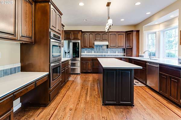 - Builtin Oven, Cooktop, Dishwasher, Disposal, Double Oven, Free Standing Refrigerator, Island, Pantry, Stainless Steel Appliance