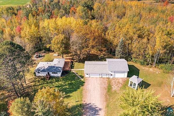 Escape to your own private sanctuary on this breathtaking 10-acre property, where peaceful country living meets thoughtful updates and exceptional outbuildings. This solid ranch-style home offers 3+ bedrooms, 2 baths, and a warm blend of rural charm with modern comfort. Step inside to find durable and stylish vinyl plank flooring flowing through much of the main level, creating a fresh, contemporary feel throughout the living spaces. Updated kitchen appliances. The main floor also features two spacious bedrooms and an updated full bathroom. Downstairs, the finished lower level provides the perfect retreat with a large family room centered around a cozy pellet stove, with an existing gas line already in place for future options. You’ll also find a versatile bonus room ideal for a home office, gym, or hobby space, along with an impressive private primary suite featuring a beautifully remodeled ¾ bath and generous walk-in closet. Recent updates, including a newer roof, forced-air furnace, and water heater, offer added peace of mind. Outside, the possibilities truly expand. A heated and insulated 36x32 oversized 3-car garage is perfect for vehicles, projects, and storage, while the impressive 28x32 custom-built outbuilding (2021) features concrete floors, electrical service, a large insulated garage door, and ample height for additional toys, equipment, or workshop needs. The property itself is a nature lover’s dream, with abundant wildlife including deer, bear, grouse, and turkeys frequently seen roaming the land. Two apple trees add charm and seasonal harvests, while the low-maintenance steel siding enhances durability. Nestled into the landscape is a custom-built gazebo surrounded by windows—an ideal spot to unwind on summer evenings, enjoy peaceful views, or start your gardening seedlings in the spring. Whether you’re seeking privacy, recreation, space to roam, or the perfect setup for hobbies and storage, this one-of-a-kind acreage offers incredible value and endless opportunity. Electric: $202/mo average Propane: 697.9 gallons delivered April 2025 to April 2026