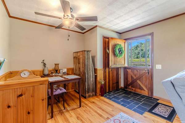 This rustic but up-to-date 3 bd., 1.5 bath home is super clean! Full basement with workspace area and huge 23' x 25' 2 car attached garage and 34' x 16' 3 season room! Outside you'll find the 30' x 60' insulated pole barn complete with full bathroom and water heater, fenced in pasture, sheds, and 3.12 acres of flat tillable ground with access off of 400 North! Rare opportunity for this type of property right now!