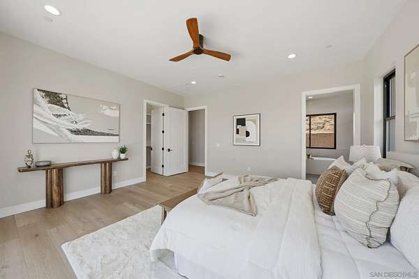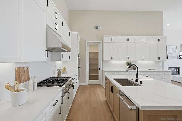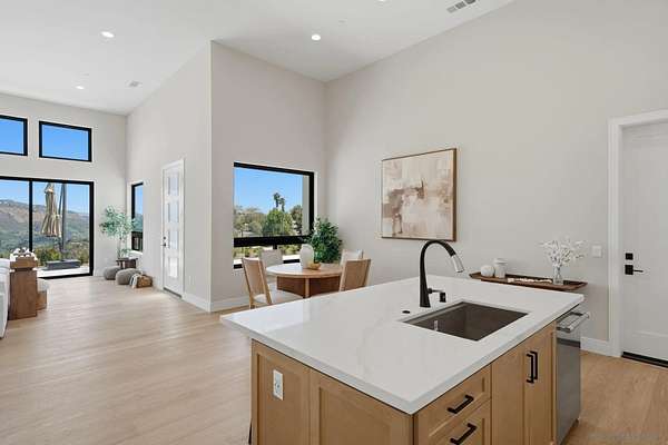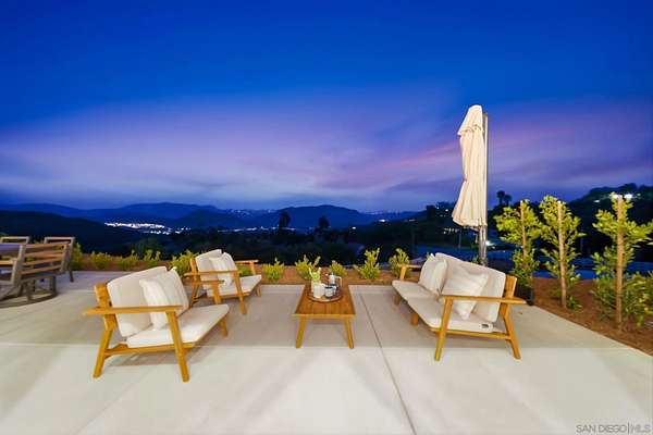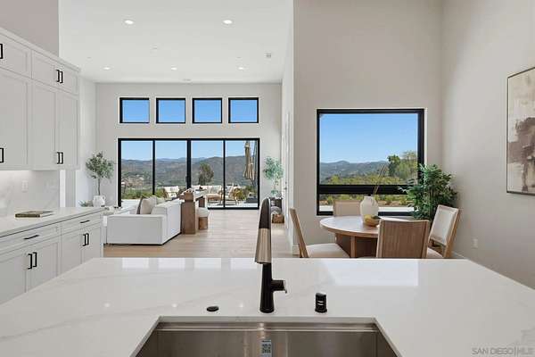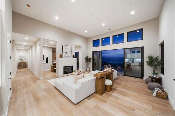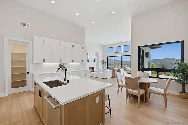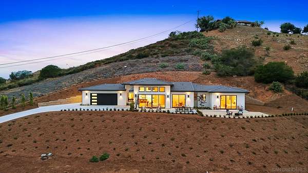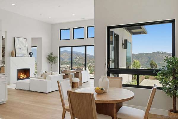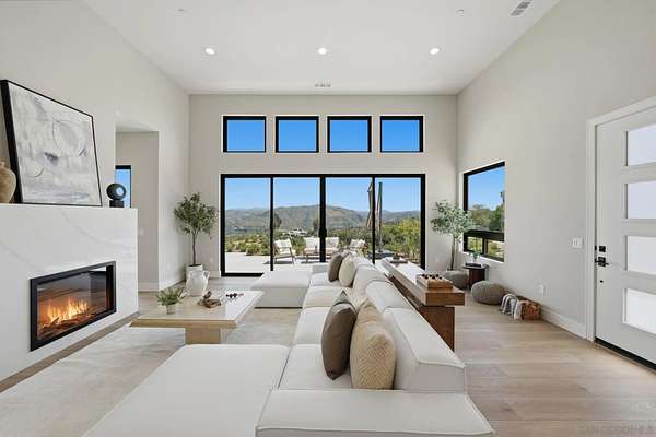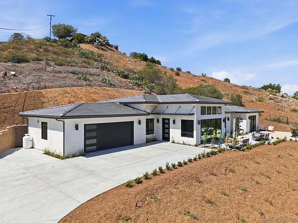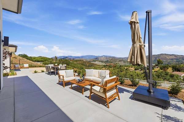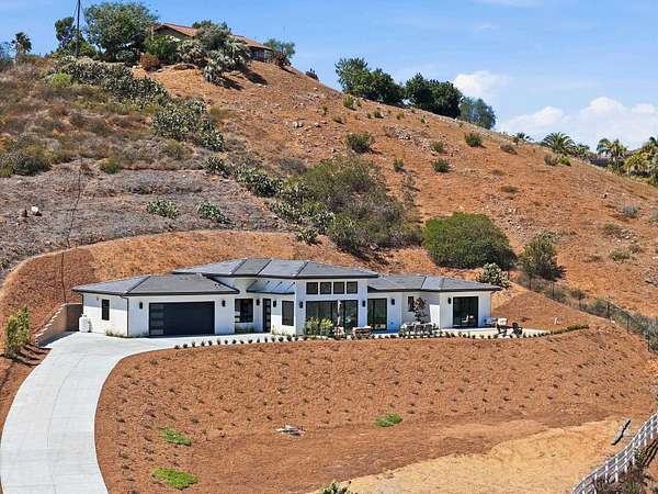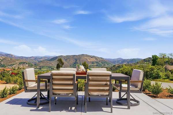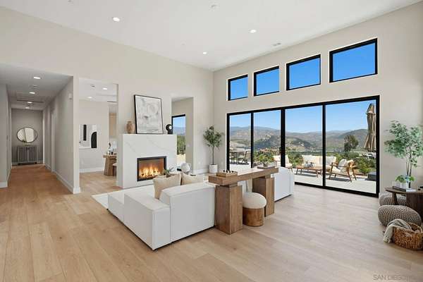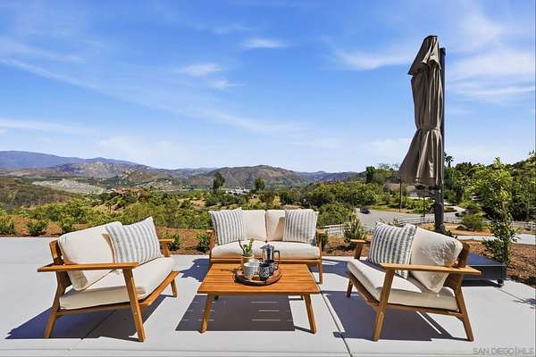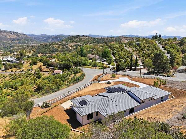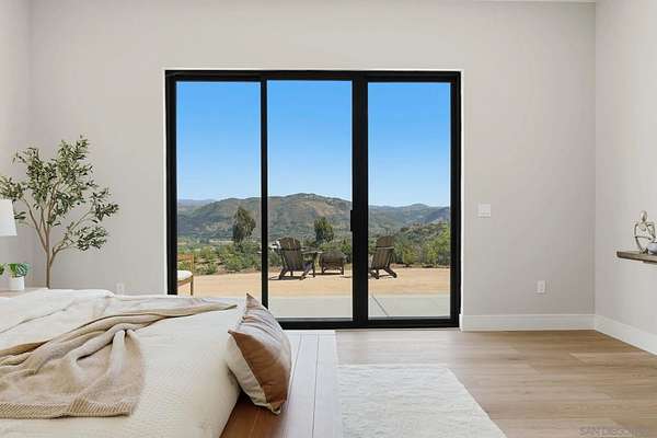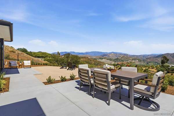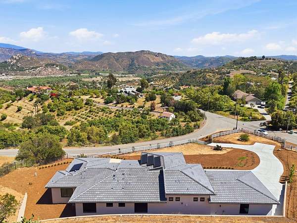 This isn't just a home with a view-it's a home built around the view. Set on 3.79 acres in the rolling hills of Fallbrook, this single level 3 BR plus office 3.5 BA brand-new home is ready for immediate occupancy, with sweeping, unobstructed east-facing mountain views that will take your breath away from the moment you arrive. From sunrise to golden hour, the scenery here is nothing short of spectacular. Expansive windows & oversized sliding doors were intentionally designed to capture every inch of the surrounding landscape, flooding the home with natural light and creating a seamless connection between indoor living & the beauty beyond. Inside, the 2,421 sq. ft. layout was crafted to complement the views at every turn. Soaring 14-foot ceilings in the kitchen & great room enhance the sense of openness, while the quartz fireplace anchors a space that feels both grand & inviting. The chef's kitchen features white shaker cabinetry, quartz counters, a statement island, & premium appliances, perfect for entertaining with a backdrop that never gets old. Each of the 3bdrms offers its own private bath, creating a retreat-like feel throughout, while the flexible bonus room allows for a fourth bedroom, office, or creative space. All with the potential to take in those same stunning vistas. The primary suite is truly something special, wake up to panoramic mountain views, unwind in a spa-inspired bathroom with a freestanding soaking tub & oversized walk-in shower, end your day with a sense of calm only a setting like this can provide. And then there's the land...