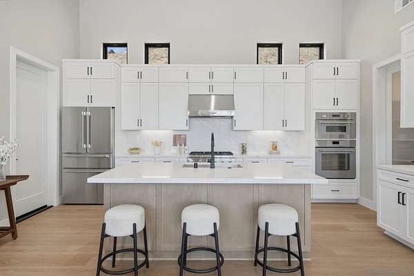 - Built-Ins, Ceiling Fan, High Ceilings (9 Feet+), Kitchen Island, Kitchen Open to Family RM, Open Floor Plan, Pantry, Recessed Lighting, Shower