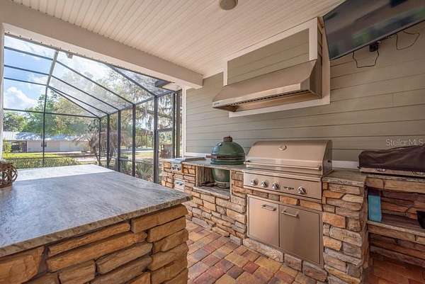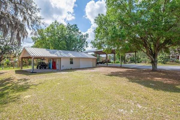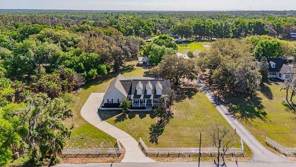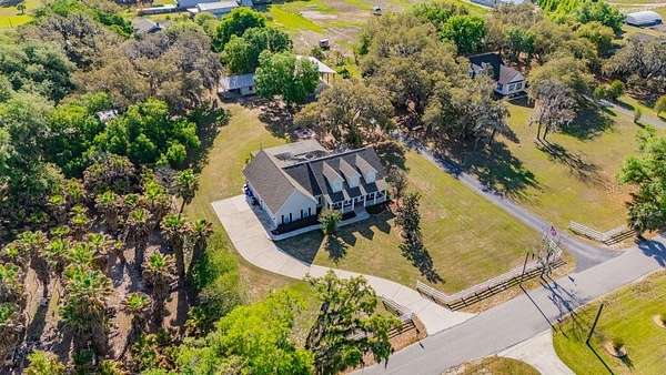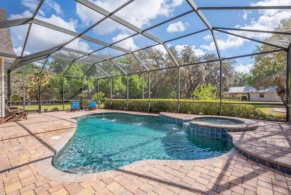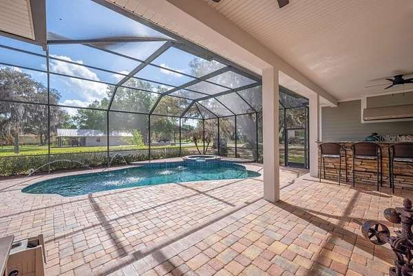 Country living at its finest! This stunning farmhouse-style estate on 1.5 acres near FishHawk offers the perfect blend of peace, privacy, and practicality—with NO HOA, NO CDD, and access to top-rated schools. Boasting nearly 3,262 sq ft, the beautifully updated main home features 4 bedrooms, 2.5 baths, maple hardwood floors, plantation shutters, and a desirable split-plan layout with a luxurious primary suite, three additional main-floor bedrooms and a huge upstairs bonus room. The showstopper exterior includes grand oak trees, lush landscaping with irrigation and lighting, and a massive covered and screened lanai overlooking a private saltwater pool and spa—complete with a fully equipped “Mac Daddy” outdoor kitchen featuring a Green Egg, gas grill, side burners, and refrigerator. Need space? This property delivers with a 50x25 air-conditioned detached garage (34x25 enclosed with 2.5-ton mini split), a 50x40 open pole barn with full RV hookups (30 & 50 amp), epoxy garage floors, and no deed restrictions—bring your RV, boat, animals, or business equipment! Major updates include a 2022 roof with transferable Owens Corning Platinum warranty, HVAC systems (2018) with UV lights and whole-house air cleaner, new septic drain field, updated pool equipment (2025), and wired security systems in both the home and garage. Conveniently located just 30 minutes to Tampa or Lakeland and minutes to FishHawk, Plant City, and Brandon, this is a rare opportunity for small business owners, car collectors, or equestrian enthusiasts—schedule your private tour today!