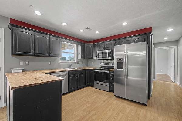 Est $2,019/moThis versatile 3 bedroom, 2 bath home sits on a sprawling, cleared 1.5-acre lot, offering unmatched utility and space. The interior features a functional layout with a spacious kitchen and comfortable living areas. A standout feature is the partial basement equipped with a dedicated storm shelter for added peace of mind. The property is a hobbyist's dream, boasting an oversized garage and a massive lower-level workshop. Additionally, a detached apartment provides excellent potential for guests or rental income. The expansive acreage includes a large fenced-in area, perfect for pets or outdoor projects. With a covered front porch and plenty of room to roam, this property offers incredible flexibility and storage in a serene setting.