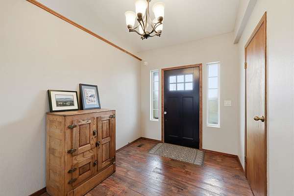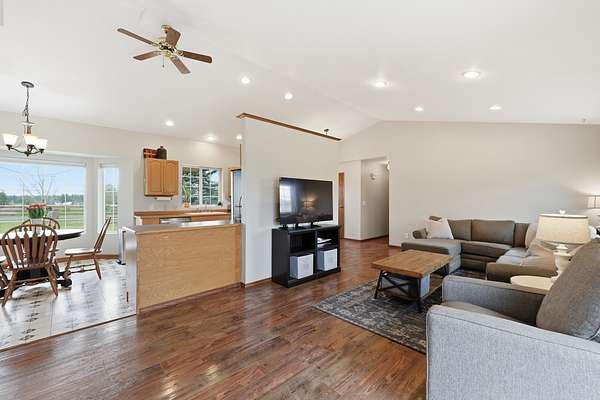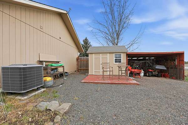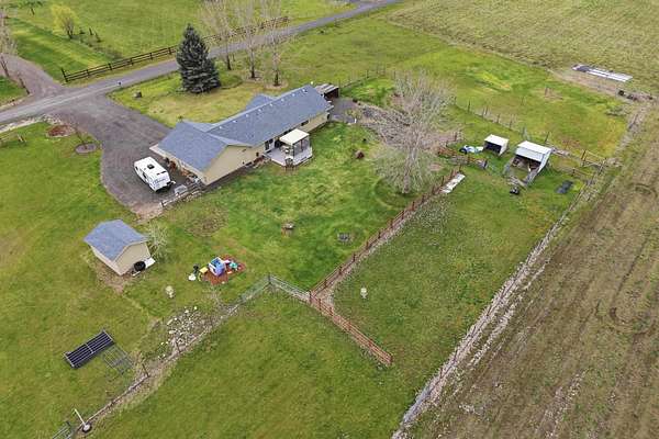 Set on 10.46 usable acres, this one-level rancher offers a rare blend of comfort, function, and country living. Built in 1994, the home features 3 bedrooms, 2.5 bathrooms, and 1,429 square feet. The primary suite includes a walk-in closet and private full bath with double sinks, large soaking tub, and tiled shower. Main floor laundry with half bath, newer stainless steel kitchen appliances, electric forced air heat, heat pump, and generator hookups add convenience. Outside, enjoy a large back deck, fenced garden area with raised beds, fruit trees, beautiful landscaping, horse setup with loafing sheds, multiple storage sheds including one with power, and an oversized 2-car attached garage. An excellent well and assumable VA loan complete the package. A special opportunity for those seeking space, versatility, and a unique property with room to live, garden, ride, and enjoy rural living.