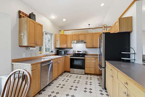- Dishwasher, Free-Standing Range, Microwave, Refrigerator
