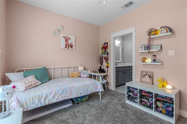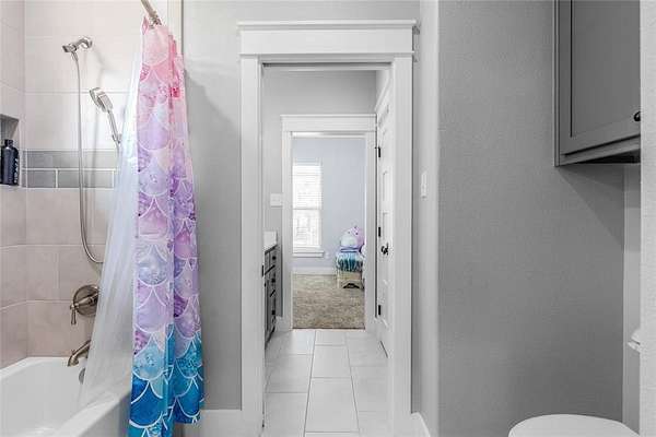 Two spacious secondary bedrooms are connected by a stylish Jack-and-Jill bathroom with separate vanities, offering privacy and space for family or guests.