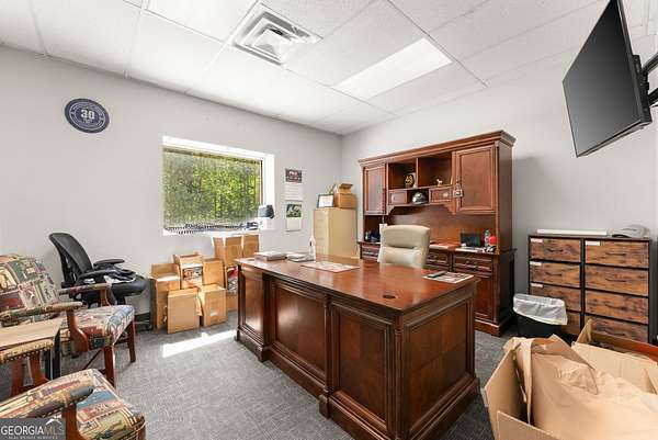Versatile 10,000 sq ft commercial property offering a functional mix of office, retail, and storage space, ideal for a wide range of business operations. Situated on over 2.5 acres, the site features abundant outdoor storage, including a lay-down yard and two lean-to sheds-perfect for equipment, materials, or fleet use. The interior is well-equipped with two break rooms and two sets of men's and women's restrooms, providing convenience for staff and customers alike. Property is powered with 440V/480V electricity, supporting heavier industrial needs, and is connected to city sewer. Its strategic location offers quick and easy access to I-985 and Gainesville, enhancing logistics and accessibility. Offered as a triple net (NNN) lease, this property presents an excellent opportunity for tenants seeking flexibility, functionality, and a strong location.