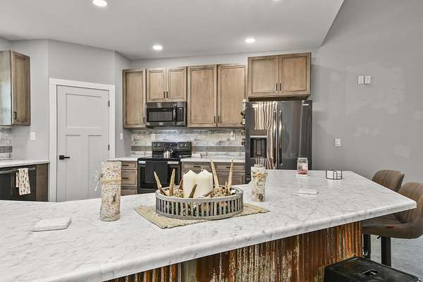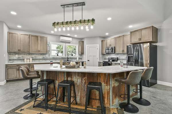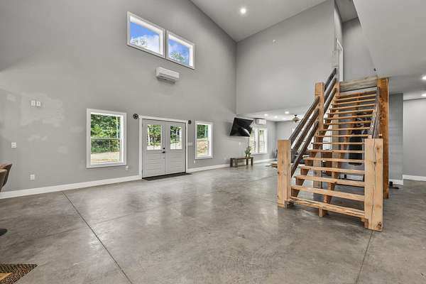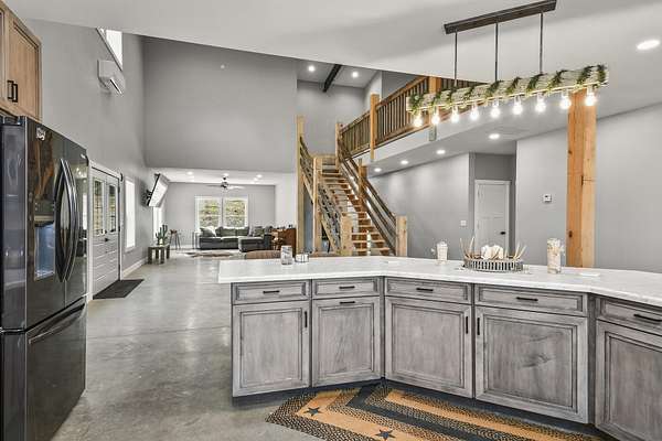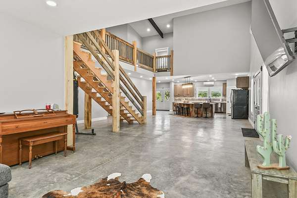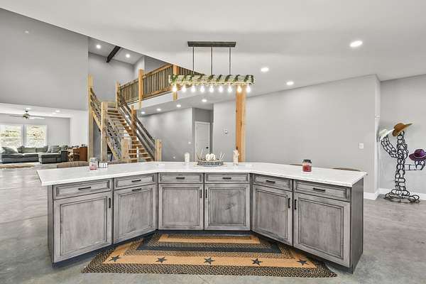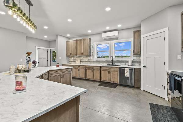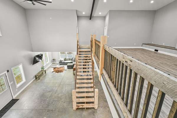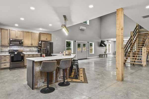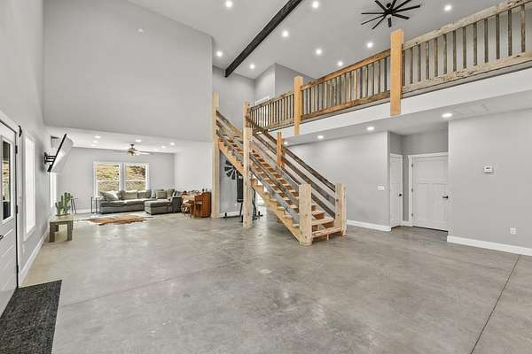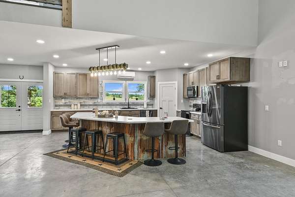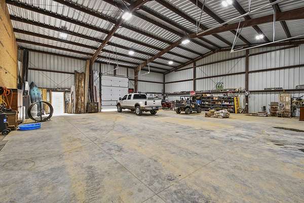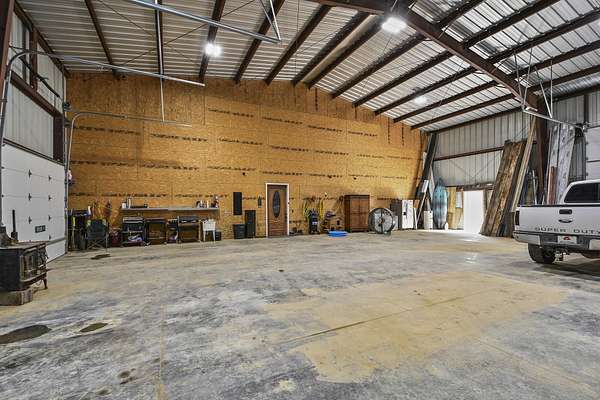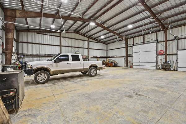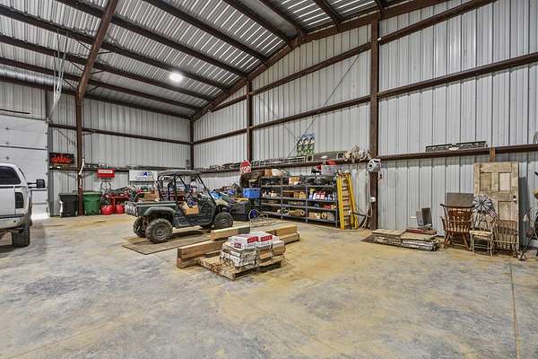 Imagine yourself watching the sunset from your 4200 sq ft 6 bd/3ba home. This barniminium is ready for you to make it your own. With spray foam insulation, this home is very energy efficient. With its 6 bedrooms, with 2 of them being non-conforming due to the absence of closets, there is plenty of room for family and guests. These rooms can still be utilized as media rooms or offices, offering versatile spaces to suit your needs. The large open floor plan is perfect for entertaining, featuring a spacious kitchen with a large island ideal for seating and preparing family meals. Imagine hosting gatherings in this inviting space, where laughter and conversation flow seamlessly. The open staircase leads to an expansive family room and four additional bedrooms, providing ample space for everyone. The shop side of the house is a standout feature, measuring 60x60 with three overhead shop doors, offering abundant space for storage and projects out of the weather. The shop also has 450 amp electric service with a 50 amp RV hookup. The 40 acres of land with trails includes a pond and an abundance of deer and wildlife, making it a nature lover's paradise. Not to mention the sunsets! AMAZING!!