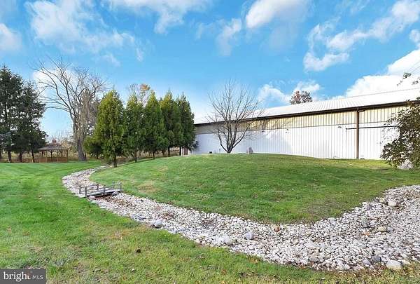 Enter via a gated long driveway to this prized property, currently used as a pharmaceutical company's US liaison. The property comprises of one handsome guest house with high ceilings, lots of windows 3 bedrooms, 3 1/2 bathrooms, paver patio, fire pit, 2 car attached garage, Finished basement with wet bar, exercise room, one full bathroom. The French influenced contemporary home is surrounded by mature trees and shrubs which blend this building with the farm. A gazebo and a fish pond soften up the landscaping. Large warehouse area provides opportunities for storing large vehicles, boats and equipment. With Deep irrigation well, three-phase electric, and abundant parking, this building could also be easily modified to accommodate farm animals. Easy access to points north, south and east via Routes 130 & 295 and NJ Turnpike.