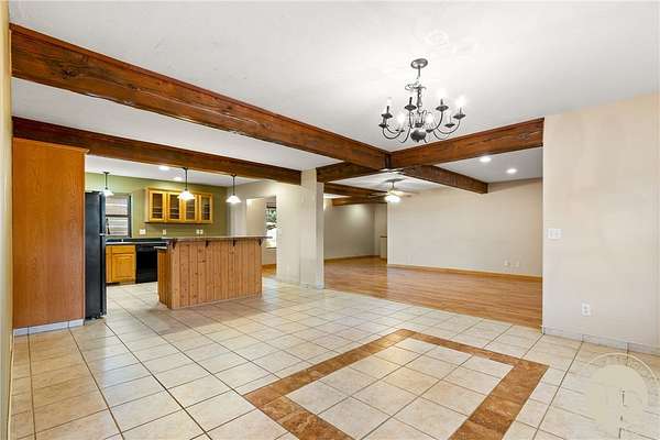 Discover privacy, comfort, and breathtaking views on nearly 2 acres. This well-designed home offers main-level living with an open-concept layout, spacious bedrooms, and a primary suite with Jacuzzi tub and direct access to a new deck. The lower level features a cozy wood-burning fireplace and flexible space ready to be transformed-ideal for a theater, game room, or additional living quarters. With water and a separate entrance, the basement could become an in-law suite or duplex. Additional perks include RV parking, a new furnace and A/C, and plenty of room for hobbies, toys, or animals. Info deemed reliable but not guaranteed. Buyer/buyer agent to verify.