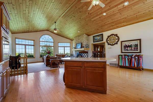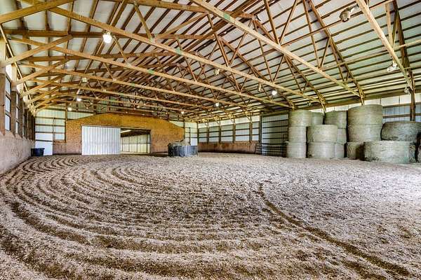 Dreaming of a Horse or Hobby Farm? Here's your chance to own this stunning 3,000+ sq. ft. home on 20+ acres, complete with a 3-car heated attached garage, 8-stall 40x60 equine barn, and a 60x90 indoor riding arena, perfectly set up for your equestrian or hobby farm lifestyle. Built in 2002, the inviting home features a spacious open-concept kitchen with maple hardwood floors and cabinetry, a stone gas fireplace in the living room, and a main-level primary suite with a walk-in closet and jacuzzi tub. Enjoy the peaceful views from the covered front porch or entertain on the large deck off the kitchen. The walk-out lower level includes a second primary bedroom with an en-suite bath and walk-in closet, a large family room, and a versatile bonus room, ideal for a home office, gym, or guest space. All this, with expansive country views, and conveniently located near New Auburn, Chetek, Chippewa Falls, and Eau Claire.