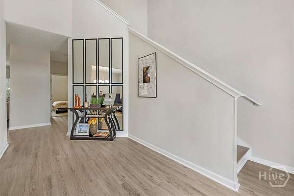 - Breakfast Area, Ceiling Fan(s), Double Vanity, Entrance Foyer, Garden Tub/Roman Tub, High Ceilings, Kitchen Island, Pantry, Programmable Thermostat, Pull Down Attic Stairs, Separate Shower, Upper Level Primary