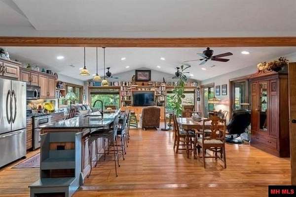 Est $3,935/moRare, private property just outside Mountain Home city limits. A winding, tree-lined driveway leads to a peaceful setting on 15 wooded acres. This spacious 5,200+ sq ft home features an open floor plan, a newly remodeled primary suite bath upstairs, and a downstairs apartment with its own kitchen. Includes a 2-car attached garage plus a 900 sq ft workshop/garage.