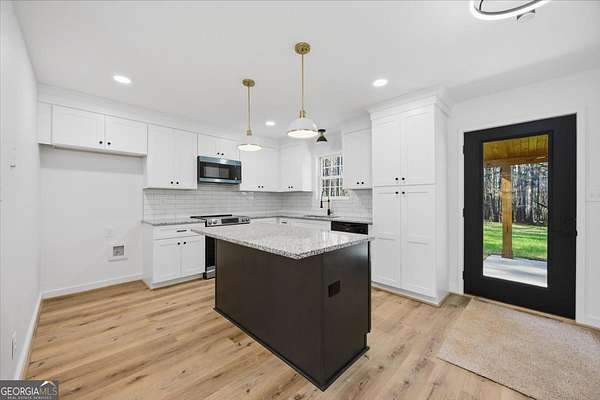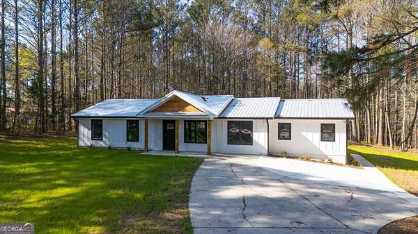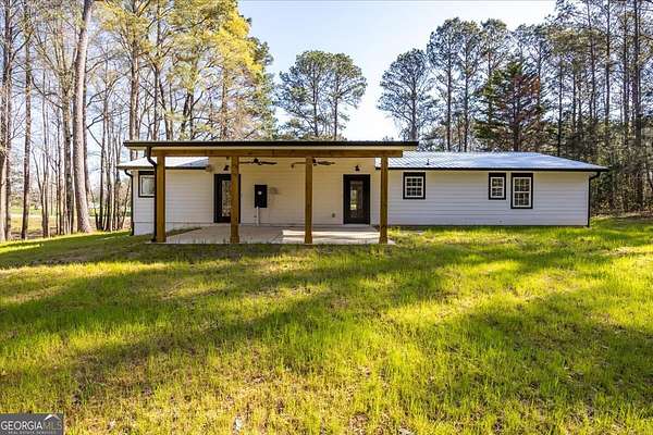MODERN FARMHOUSE ON 2 ACRES - FULLY RENOVATED & MOVE-IN READY! This 4BR/2BA, 1,924 sq ft home delivers the perfect mix of style, space, and upgrades. Eye-catching curb appeal with board & batten siding, black windows, rustic columns, and a NEW metal roof. Inside, a bright open-concept layout features LVP flooring, new carpet, craftsman-style doors, and updated lighting throughout. The kitchen shines with new cabinets, granite countertops, tile backsplash, stainless steel appliances, and a large island built for gathering. Private owner's suite with spa-style bath-soaking tub, tiled shower w/ bench, quartz double vanity, and walk-in closet. Split bedroom plan with 3 generous sized guest bedrooms and convenient tiled Jack and Jill bath! Massive 16x24 covered patio with tongue & groove ceiling and fans-ideal for entertaining or relaxing. New HVAC, updated plumbing/electrical, and more. Private, peaceful setting with modern finishes-this one stands out!