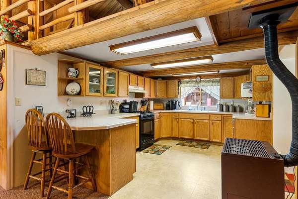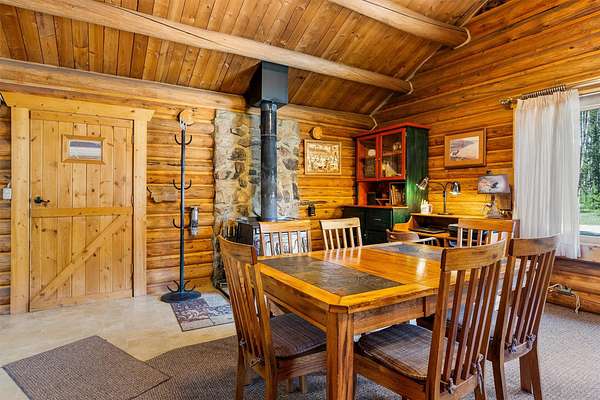 Nestled deep in the heart of the stunning Bitterroot National Forest, this authentic log home offers a rare combination of seclusion, functionality, and Montana charm. Set on a pristine piece of land near the East Fork of the Bitterroot River-famous for its world-class trout fishing-this property is a true outdoorsman's dream. Outbuildings abound and elevate this property well beyond a typical rural home. A full game and meat processing facility-complete with a walk-in cooler-makes this an ideal setup for hunters and homesteaders alike. There's also a woodworking shop, a detached garage, and various utility outbuildings offering storage, workspace, and room to grow. The main residence is a classic log home, warm and inviting, with thoughtful updates and modern comforts while preserving that timeless mountain-lodge feel. Inside, you'll find a cozy wood-burning stove, rich timber beams. An old-fashioned outhouse tucked beneath the trees-charming and whimsical, yet the home itself has full indoor plumbing for all the modern conveniences. Whether you're casting flies on the East Fork, processing your harvest, or simply enjoying the peace and beauty of the Bitterroot Valley, this property is a one-of-a-kind opportunity to live off the land in comfort and style.