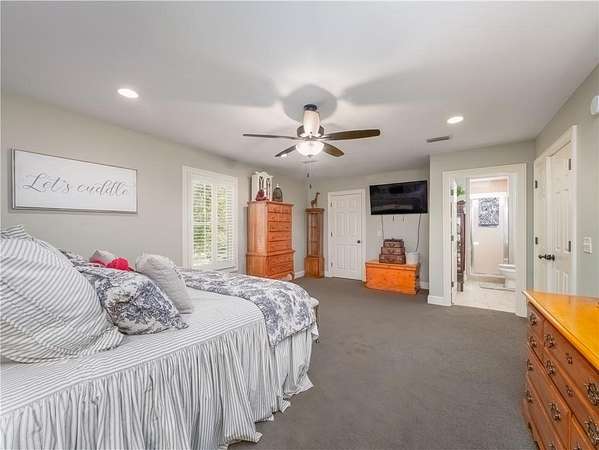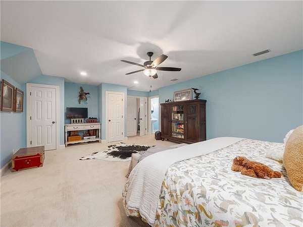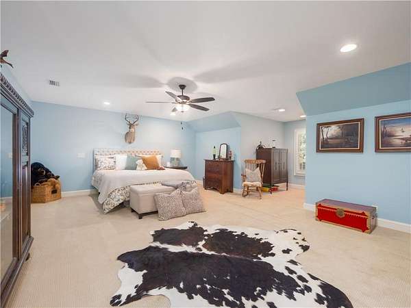 Inside, the thoughtful floor plan offers oversized rooms throughout. The primary suite rests in its own private corner on the main floor, while upstairs, each guest room includes a full ensuite bath for comfort and privacy. Tucked into its own wing, a spacious bonus room offers flexibility as an additional bedroom, home office, or whatever suits your lifestyle best.
