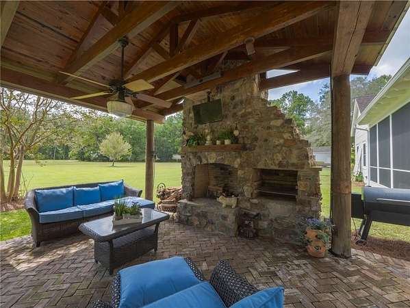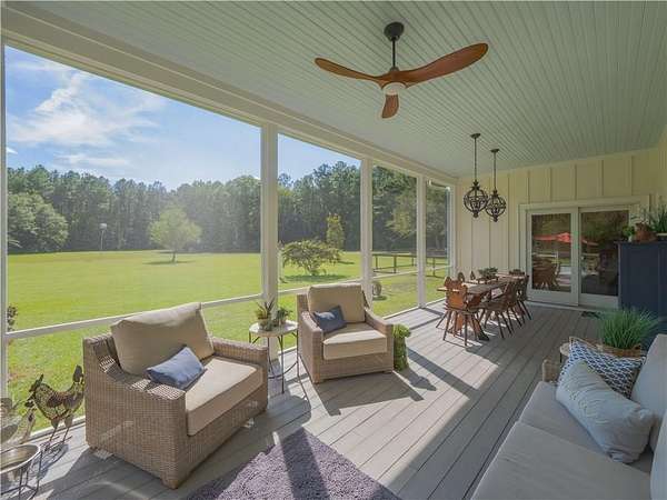 Out back, life slows down around the pond--complete with a fountain and deck--perfect for quiet mornings or evenings spent unplugged. Just beyond, a newly screened-in porch creates a comfortable spot to enjoy fresh air without the bugs, rain, or heat cutting things short. A few steps further, the striking brick pavilion--built from refurbished lumber salvaged from a historic Georgia mill--stands ready for all lifes gatherings.